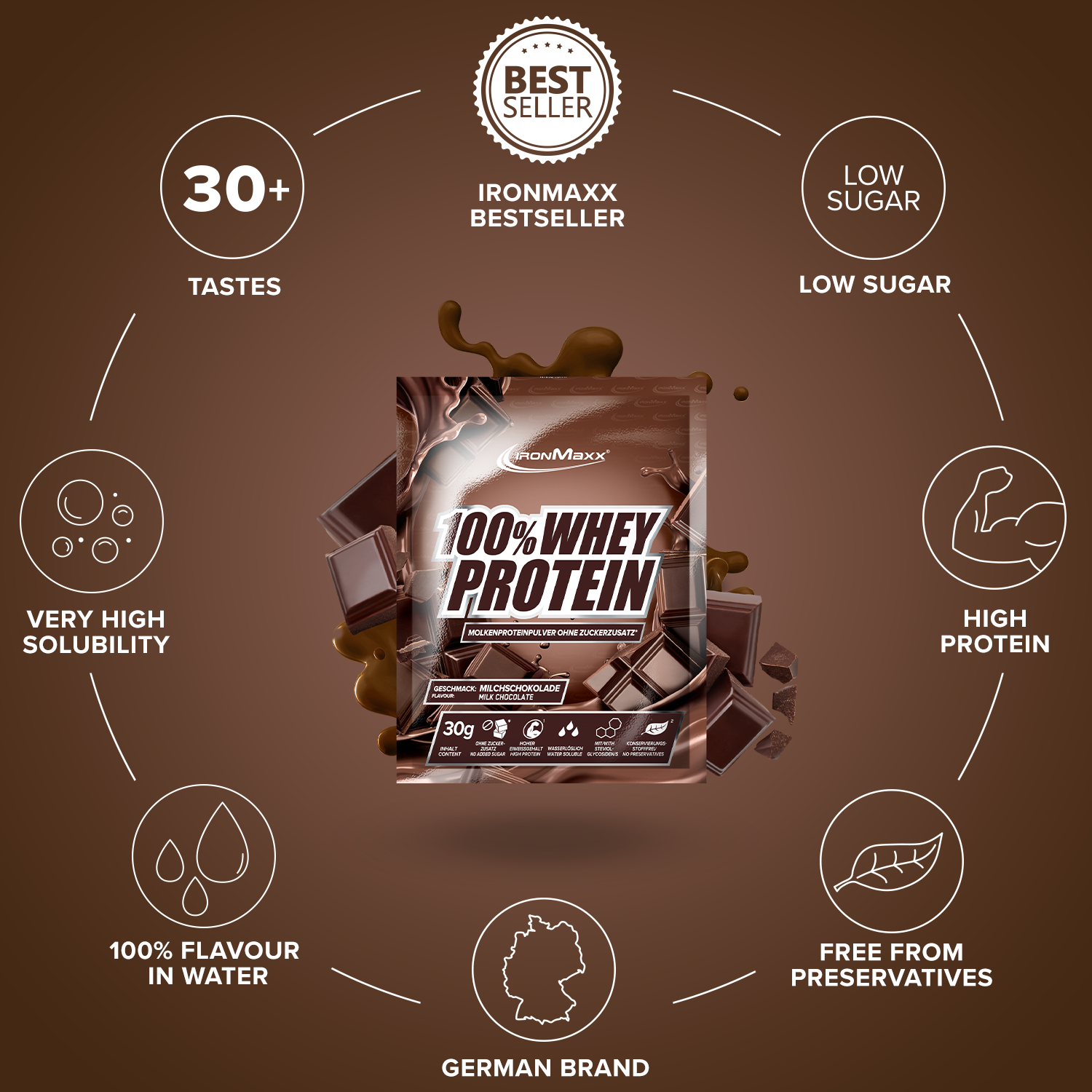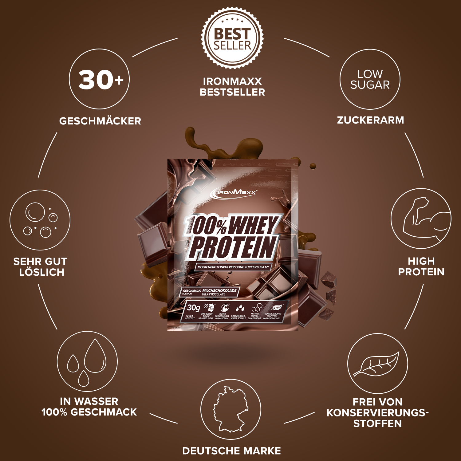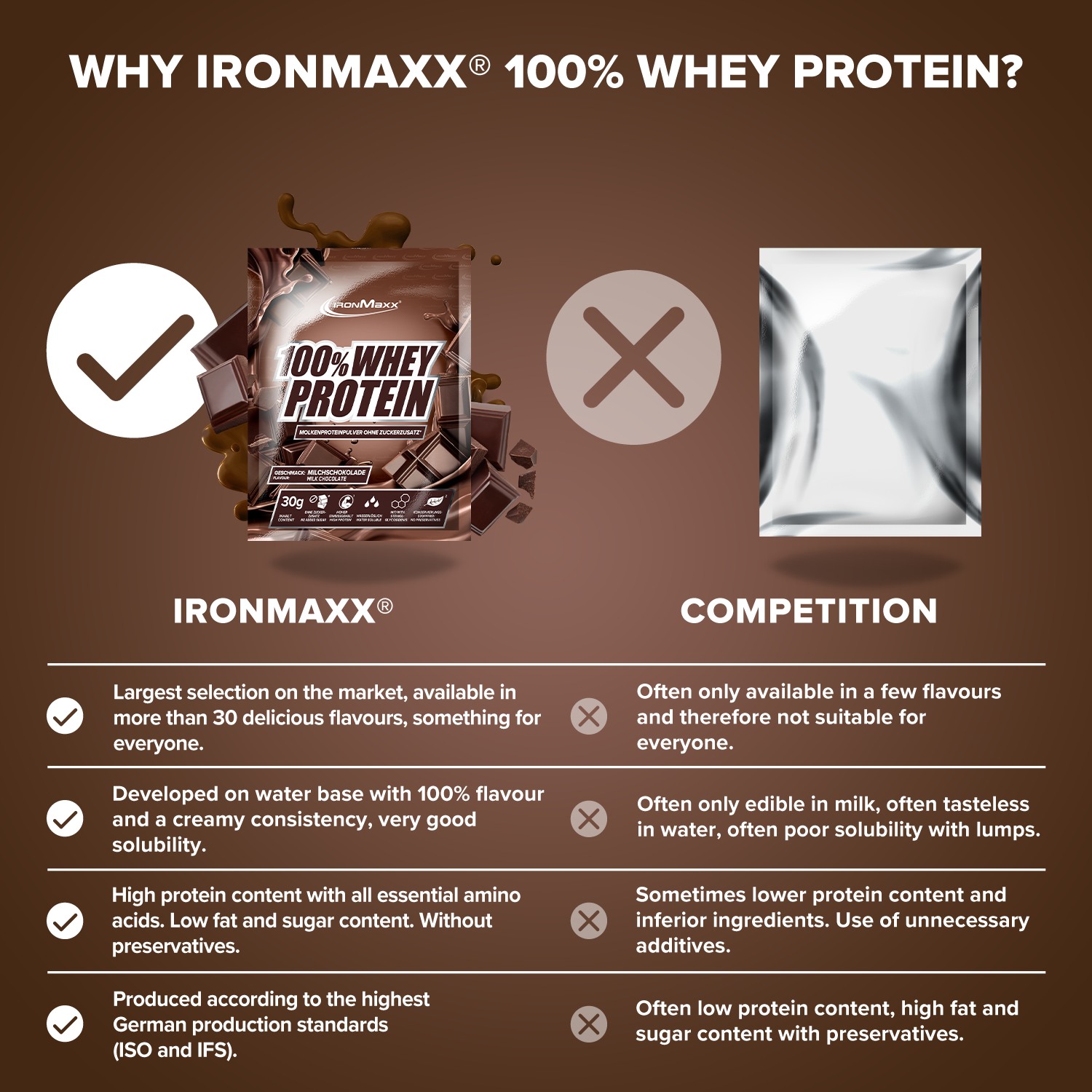 IronMaxx® 100% Whey Protein gehört zu den beliebtesten Eiweißshakes für Muskelaufbau, Regeneration und Diätphasen. Mit bis zu 80 % Eiweiß, einem vollständigen Aminosäurenprofil (inklusive BCAAs und EAAs) sowie einem cremigen Geschmack ist es der ideale Begleiter für deinen Fitnessalltag.