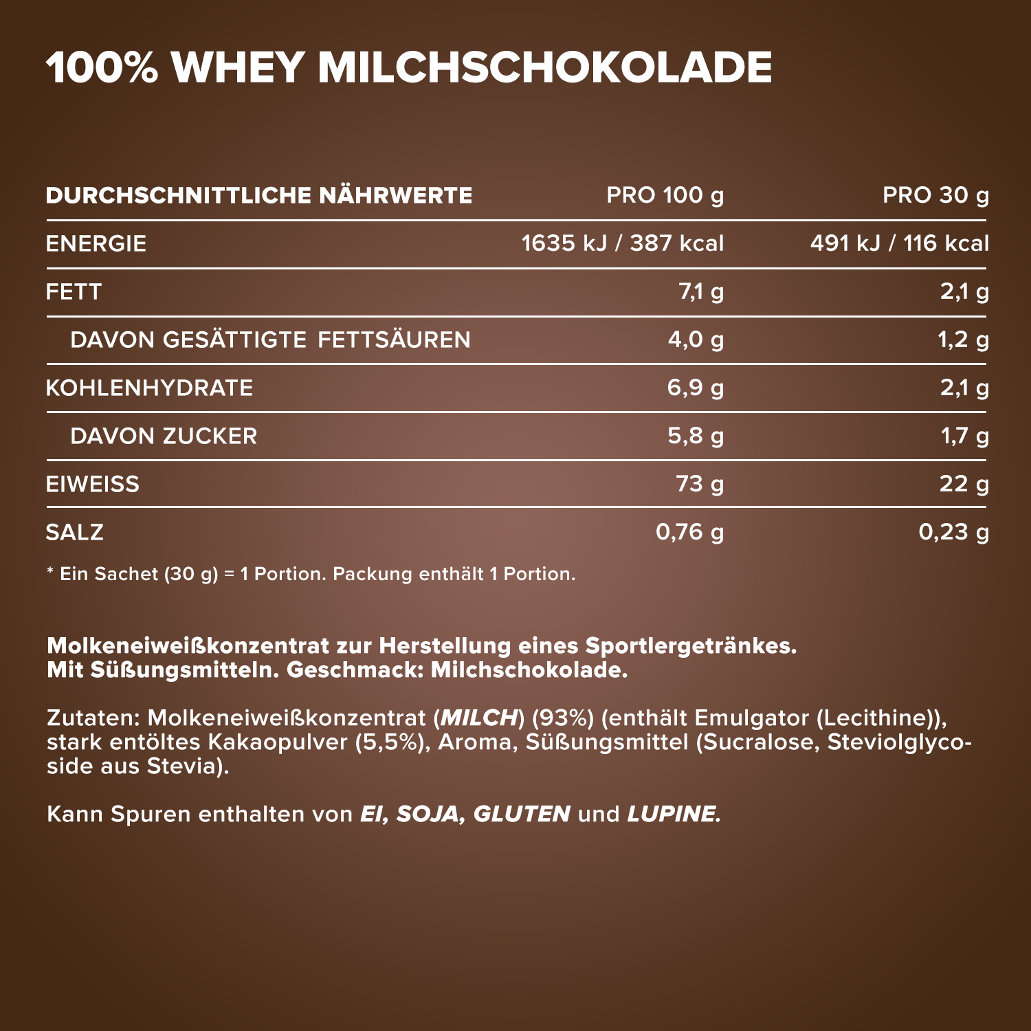 ²Eine Portion enthält 30 g Pulver und 200 ml Wasser oder Milch.³In unserem Designer Whey verwenden wir keinen zugesetzten Zucker, sondern setzen auf unbedenkliche