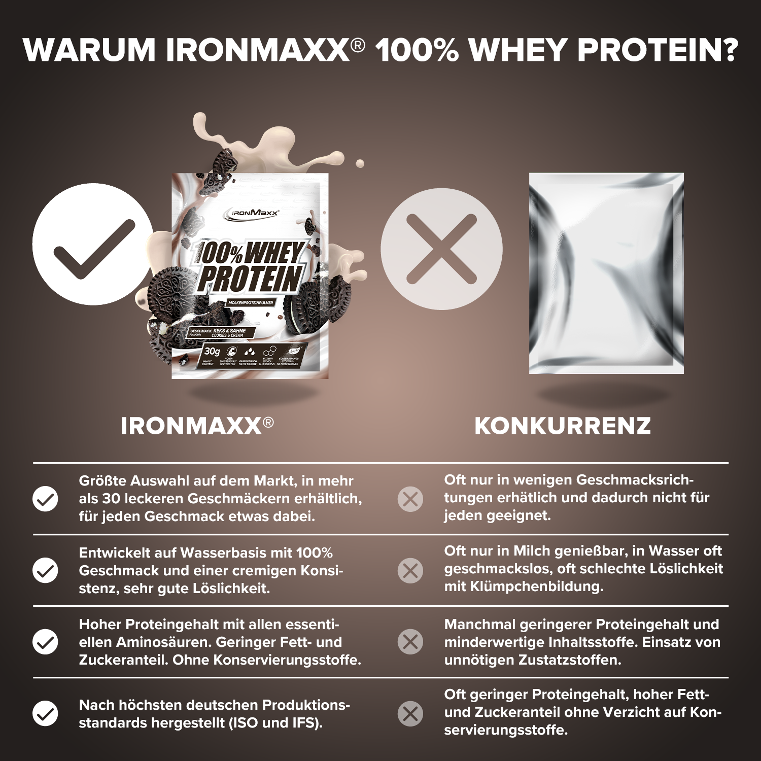 IronMaxx® 100% Whey Protein in der Sorte gehört zu den beliebtesten Eiweißshakes für Muskelaufbau, Regeneration und Diätphasen. Mit bis zu 80 % Eiweiß, einem vollständigen Aminosäuren-Profil (inklusive BCAAs und EAAs) sowie einem cremig-schokoladigen Geschmack ist es der perfekte Begleiter für deinen Fitnessalltag.