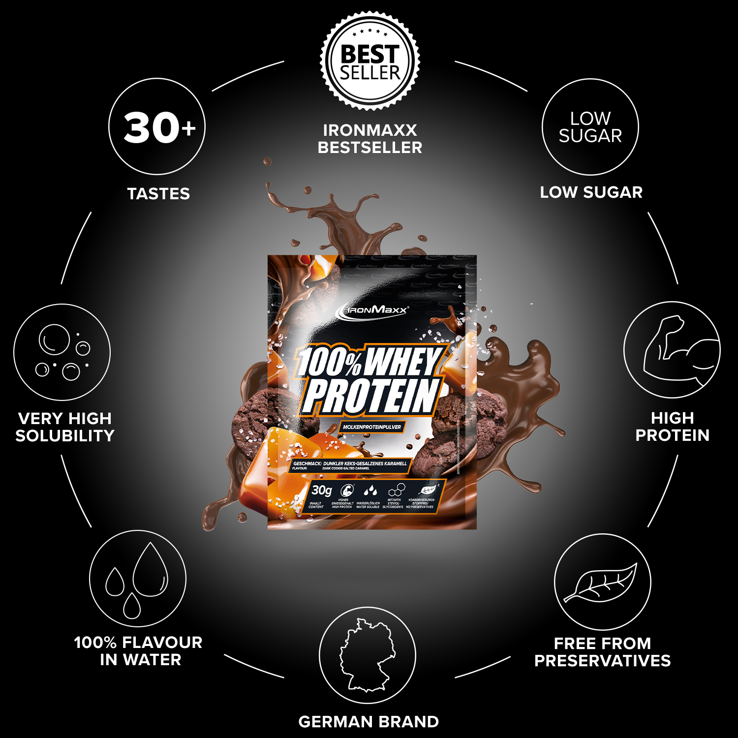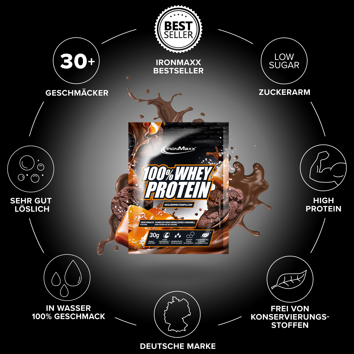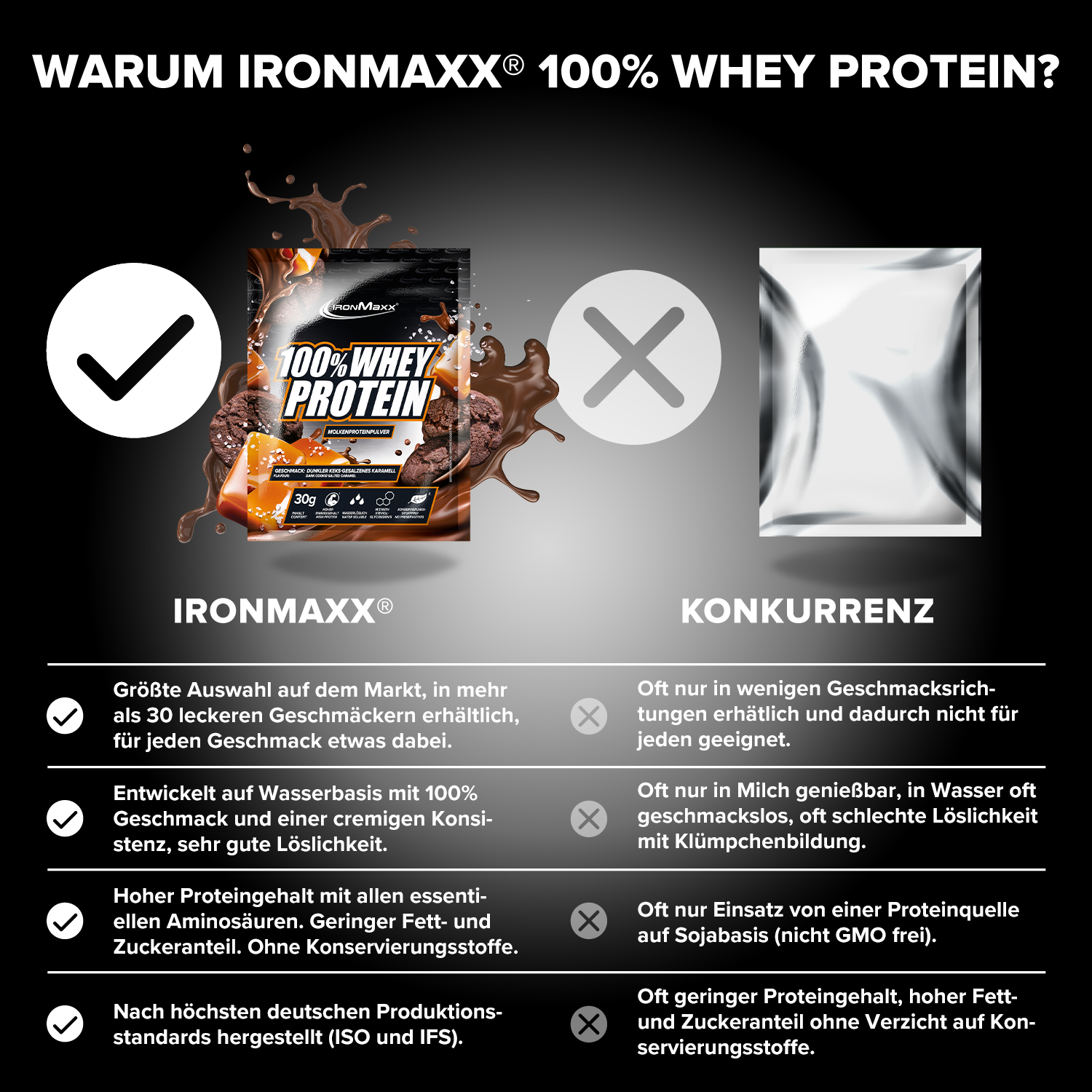 IronMaxx® 100% Whey Protein in der Sorte gehört zu den beliebtesten Eiweißshakes für Muskelaufbau, Regeneration und Diätphasen. Mit bis zu 80 % Eiweiß, einem vollständigen Aminosäuren-Profil (inklusive BCAAs und EAAs) sowie einem cremig-schokoladigen Geschmack ist es der perfekte Begleiter für deinen Fitnessalltag.