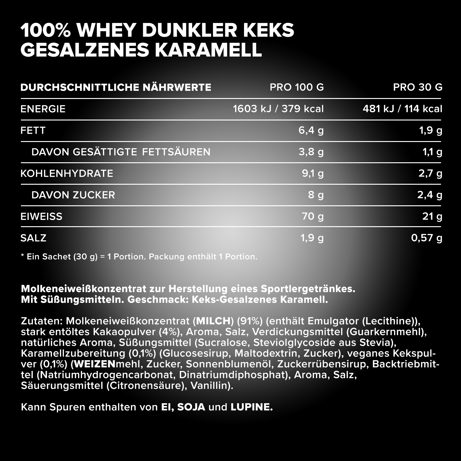 ²Eine Portion enthält 30 g Pulver und 200 ml Wasser oder Milch.³In unserem Designer Whey verwenden wir keinen zugesetzten Zucker, sondern setzen auf unbedenkliche