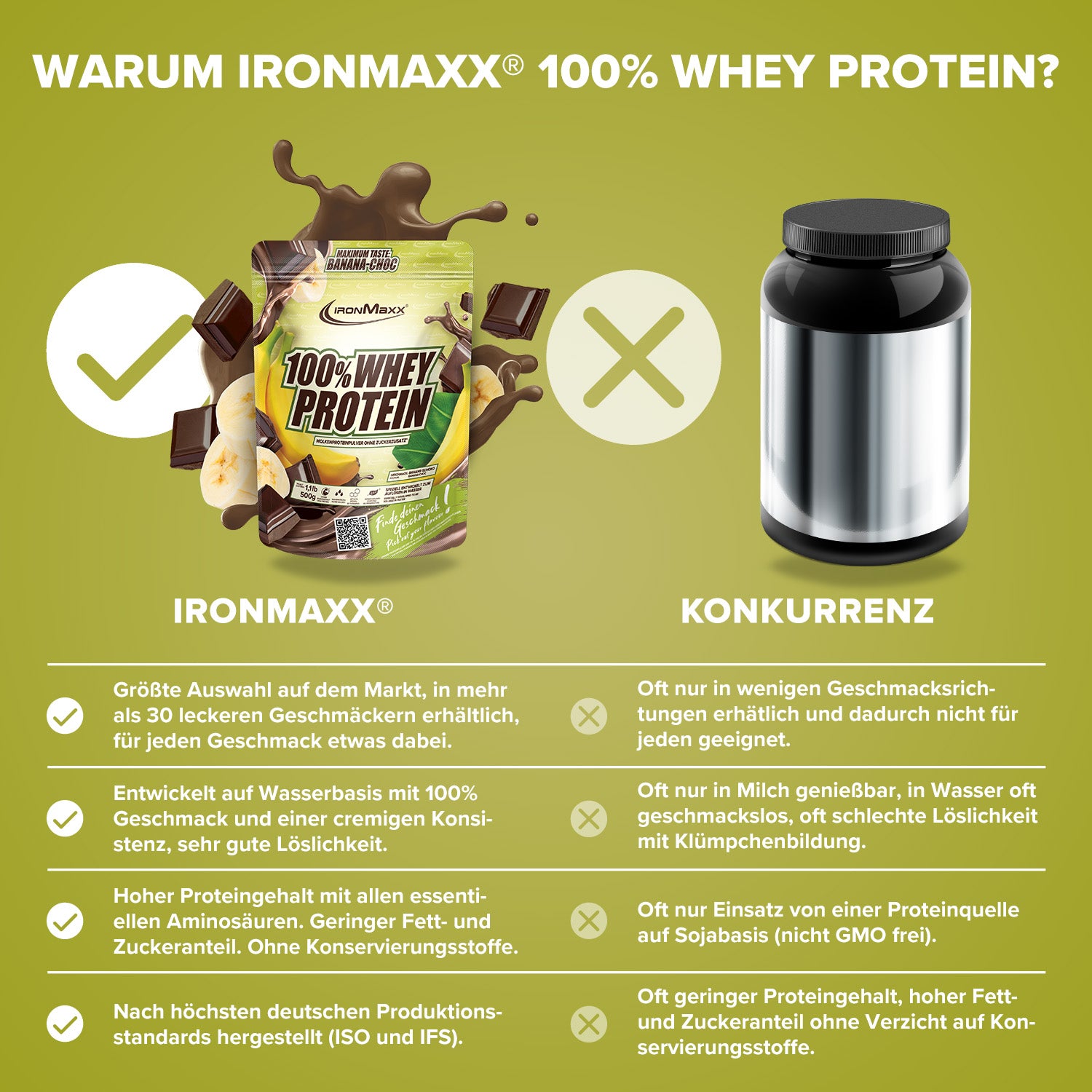 IronMaxx® 100% Whey Protein gehört zu den beliebtesten Eiweißshakes für Muskelaufbau, Regeneration und Diätphasen. Mit bis zu 80 % Eiweiß, einem vollständigen Aminosäurenprofil (inklusive BCAAs und EAAs) sowie einem cremigen Geschmack ist es der ideale Begleiter für deinen Fitnessalltag.