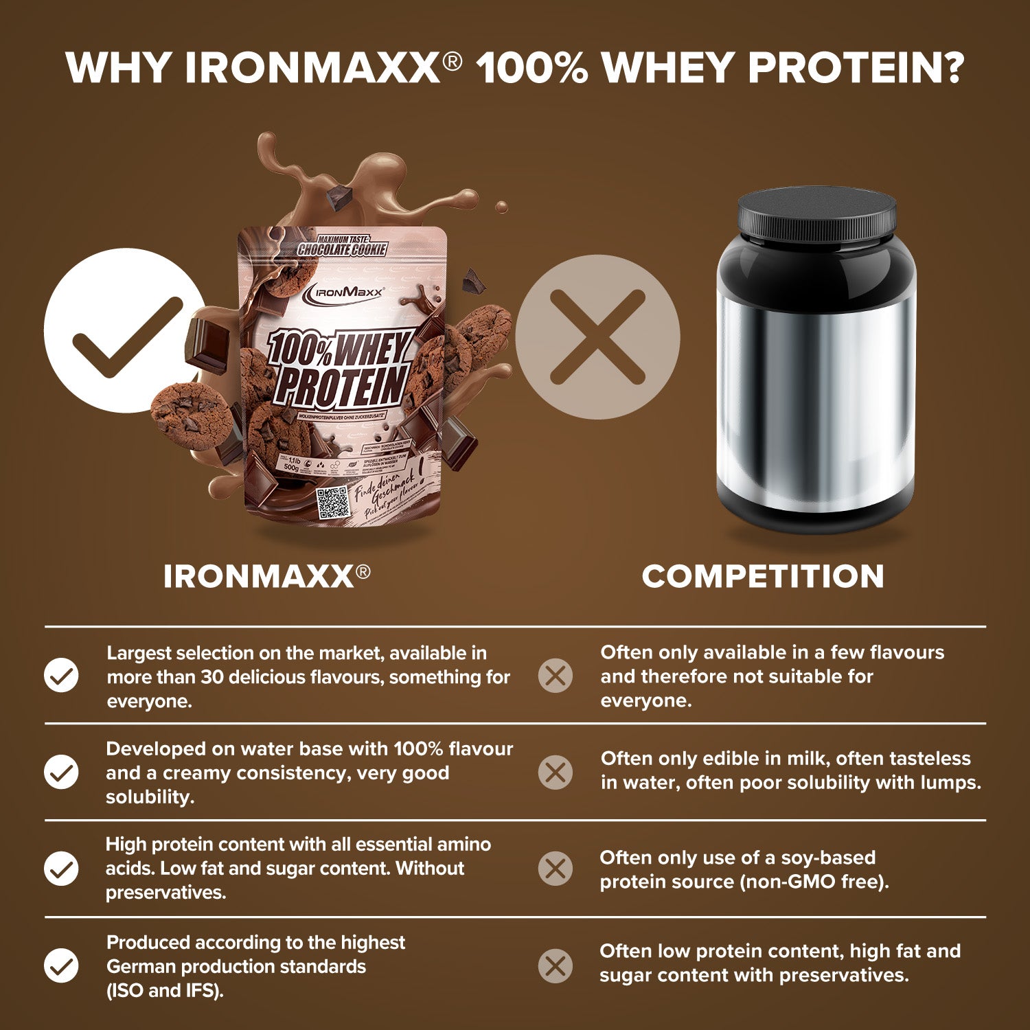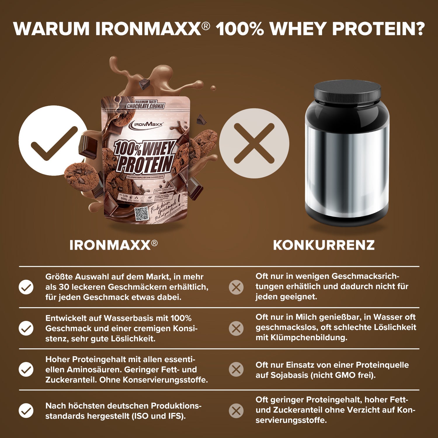 IronMaxx® 100% Whey Protein gehört zu den beliebtesten Eiweißshakes für Muskelaufbau, Regeneration und Diätphasen. Mit bis zu 80 % Eiweiß, einem vollständigen Aminosäurenprofil (inklusive BCAAs und EAAs) sowie einem cremigen Geschmack ist es der ideale Begleiter für deinen Fitnessalltag.