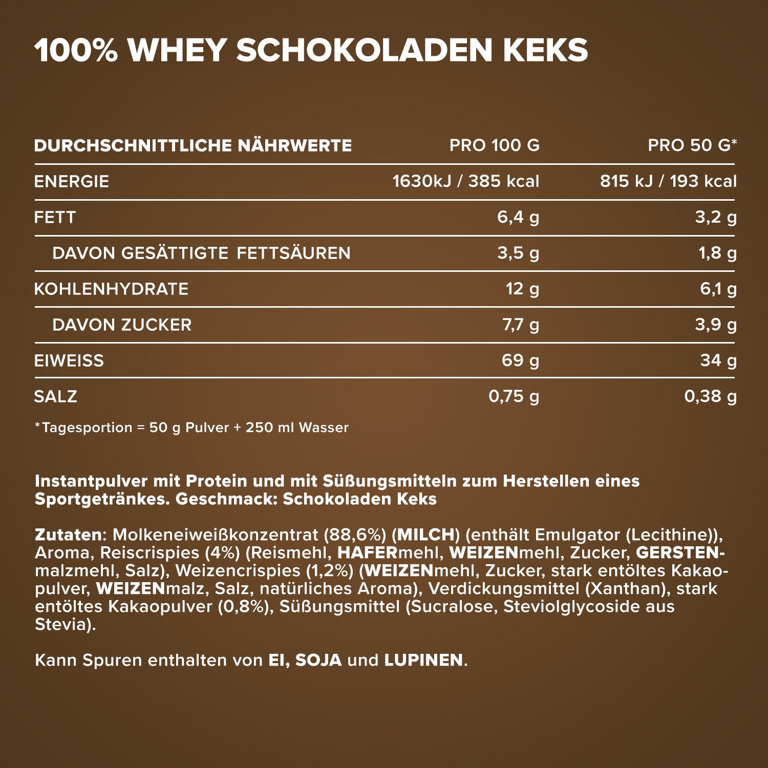 ²Eine Portion enthält 30 g Pulver und 200 ml Wasser oder Milch.³In unserem Designer Whey verwenden wir keinen zugesetzten Zucker, sondern setzen auf unbedenkliche