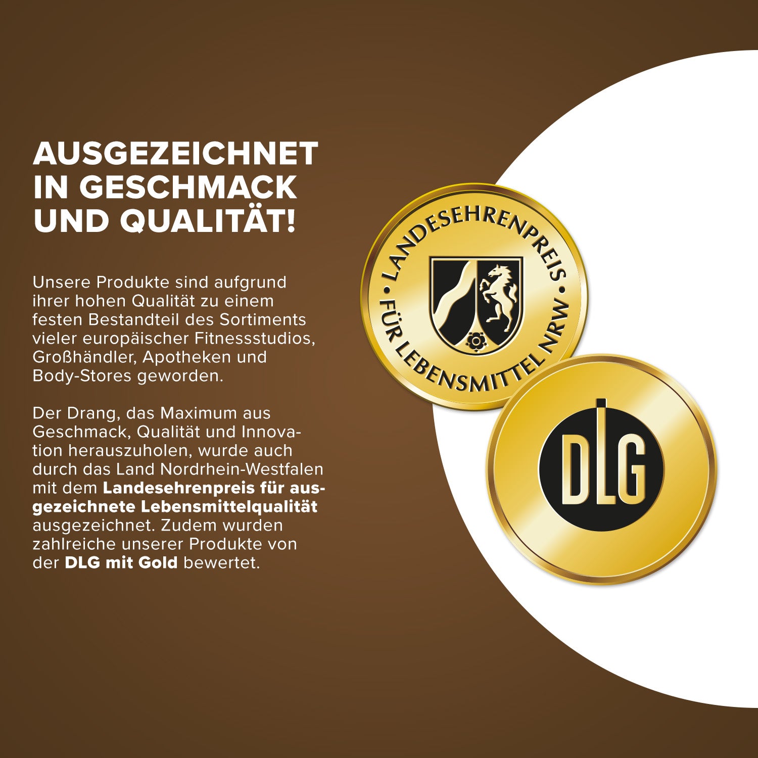 Die angegebene empfohlene tägliche Verzehrmenge darf nicht überschritten werden! Außerhalb der Reichweite von Kindern lagern! Vor Wärme, Feuchtigkeit und Sonneneinstrahlung geschützt aufbewahren. Proteine tragen zu einer Zunahme an Muskelmasse bei. Eine ausgewogene und abwechslungsreiche Ernährung und eine gesunde Lebensweise sind wichtig. Laut Handelsbrauch.