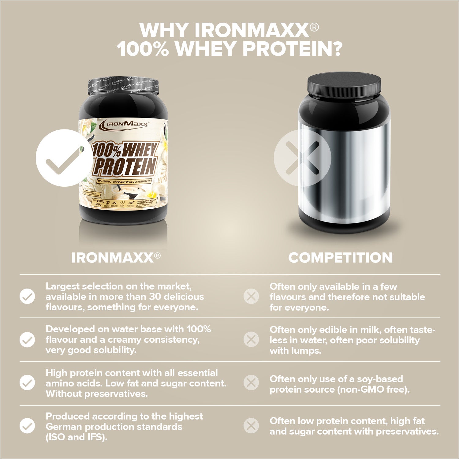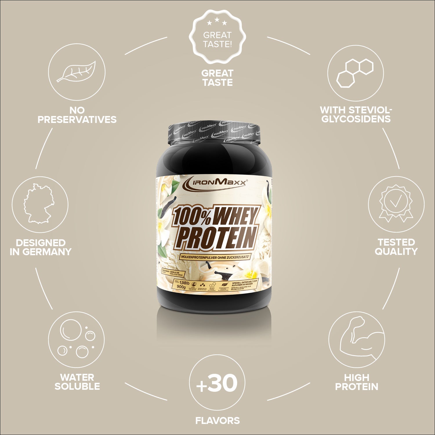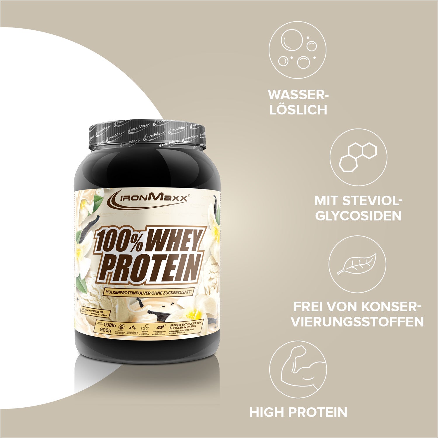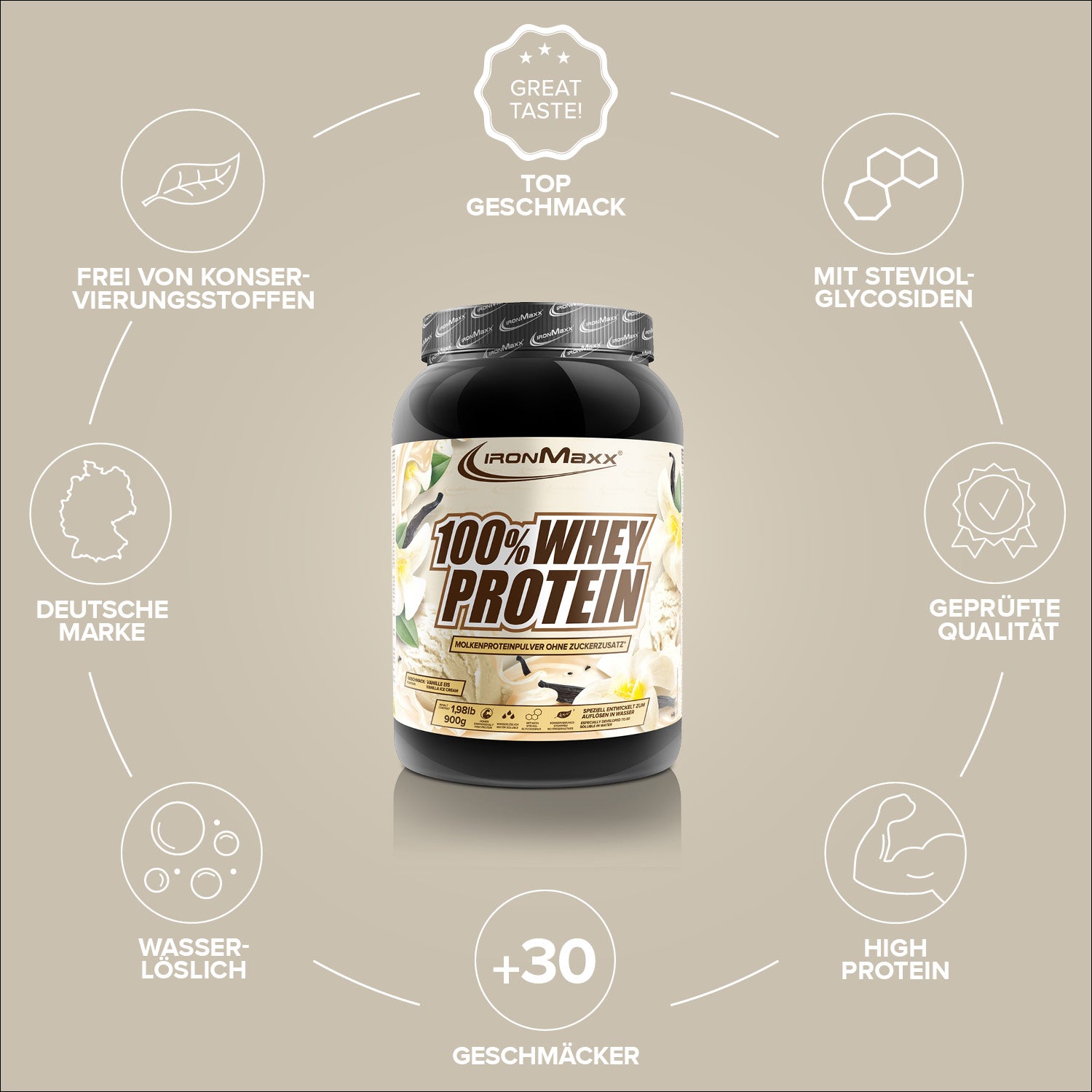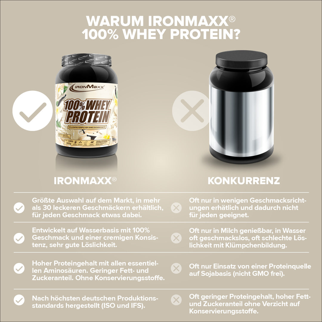 IronMaxx® 100% Whey Protein zählt zu den beliebtesten Proteinshakes für Muskelaufbau, Regeneration und Diätphasen. Mit bis zu 80 % Eiweiß, einem kompletten Aminosäurenprofil (inkl. BCAAs & EAAs) und cremigem Geschmack ist es der ideale Begleiter für deinen Fitnessalltag.