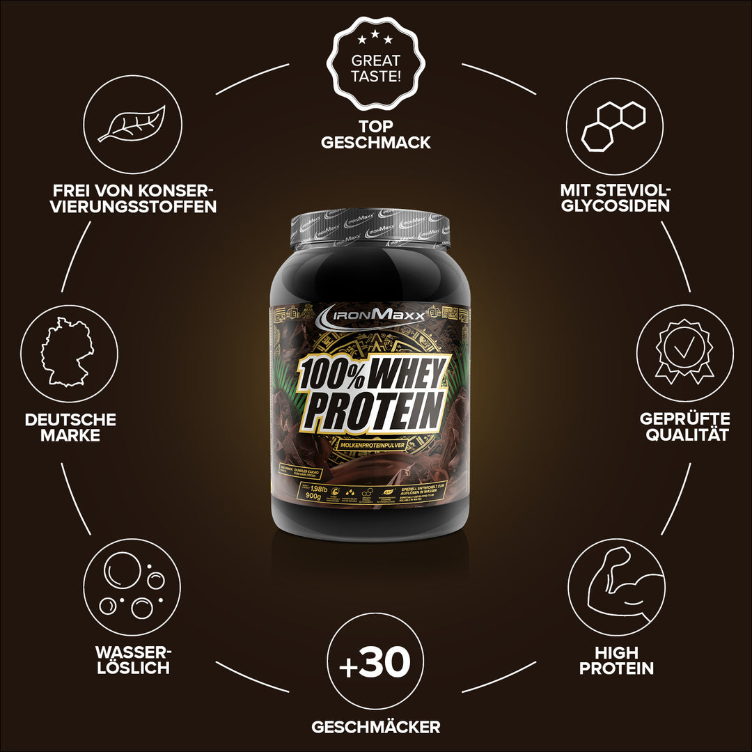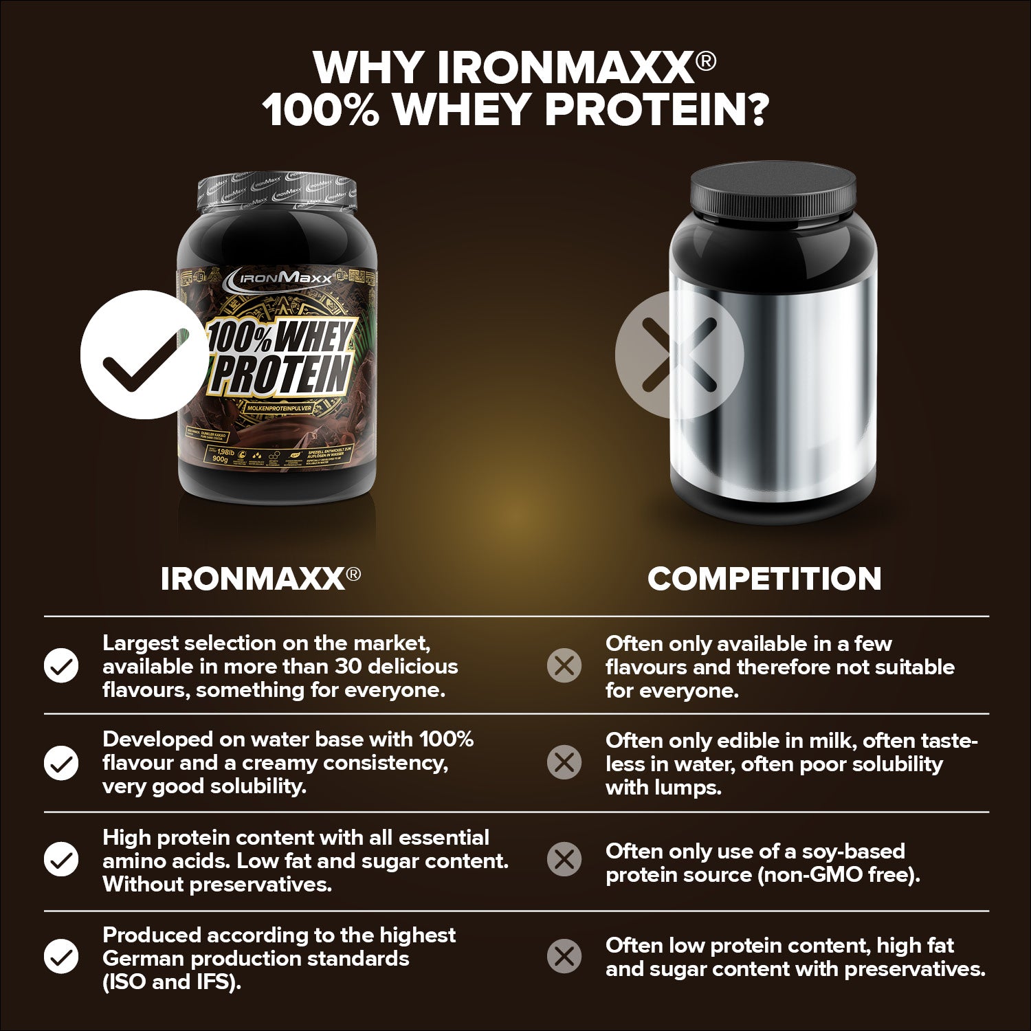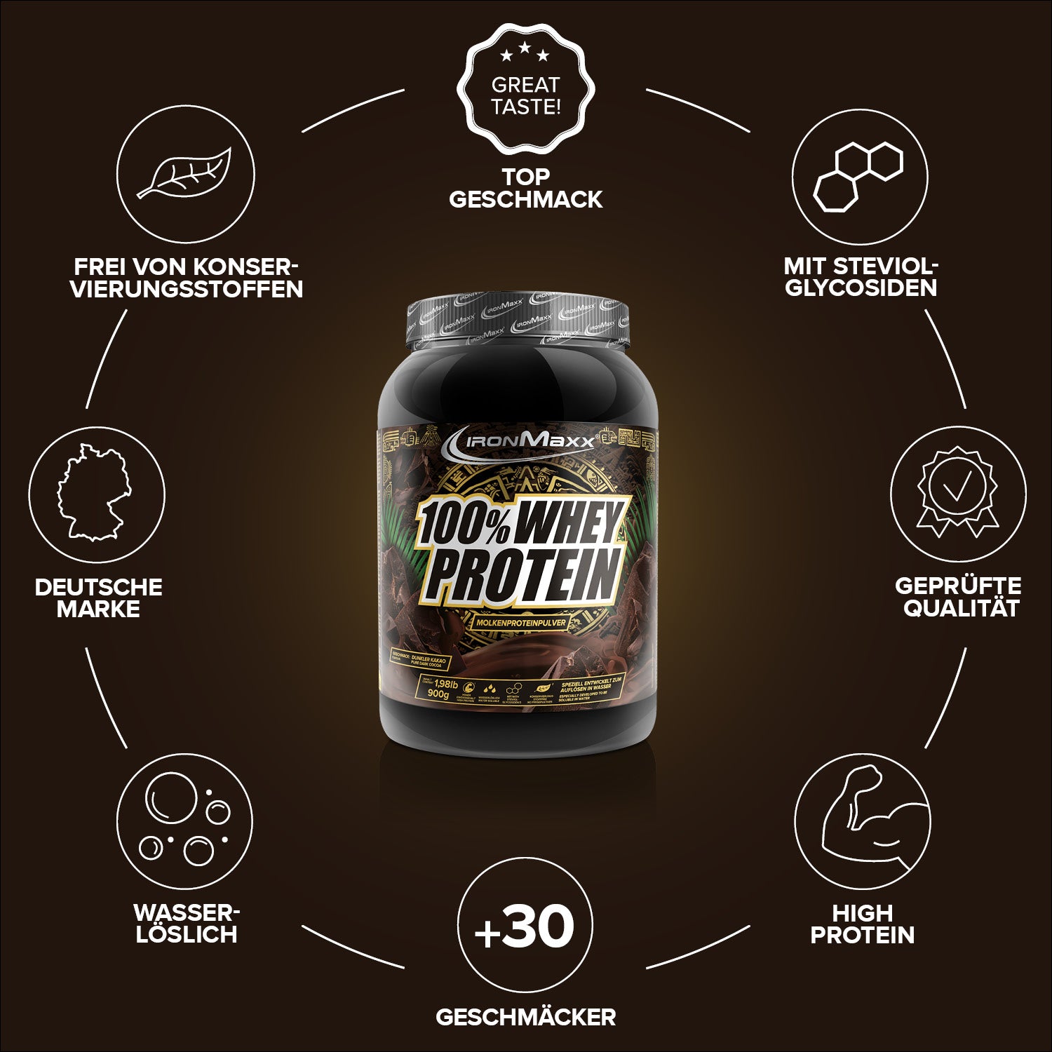 IronMaxx® 100% Whey Protein zählt zu den beliebtesten Proteinshakes für Muskelaufbau, Regeneration und Diätphasen. Mit bis zu 80 % Eiweiß, einem kompletten Aminosäurenprofil (inkl. BCAAs & EAAs) und cremigem Geschmack ist es der ideale Begleiter für deinen Fitnessalltag.
