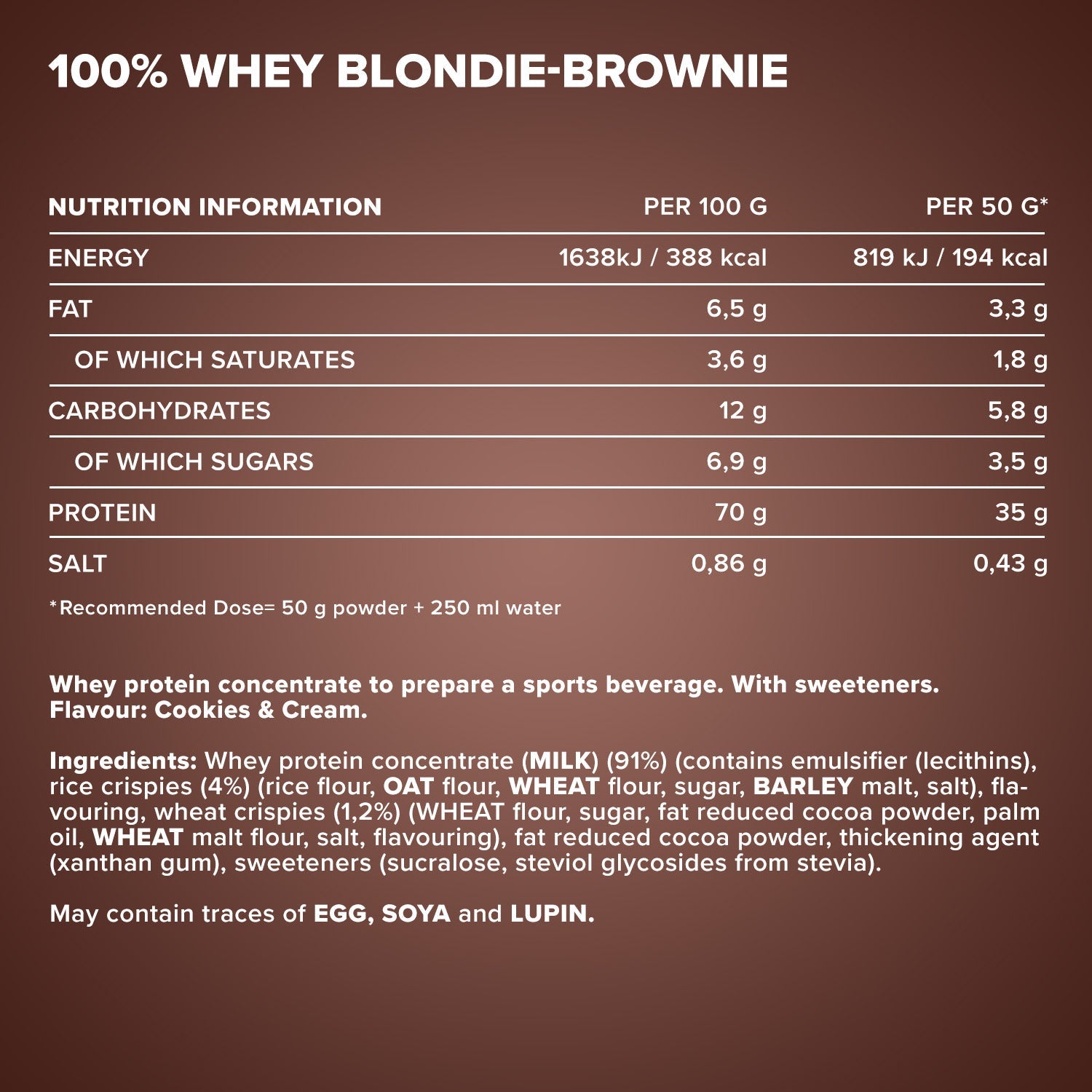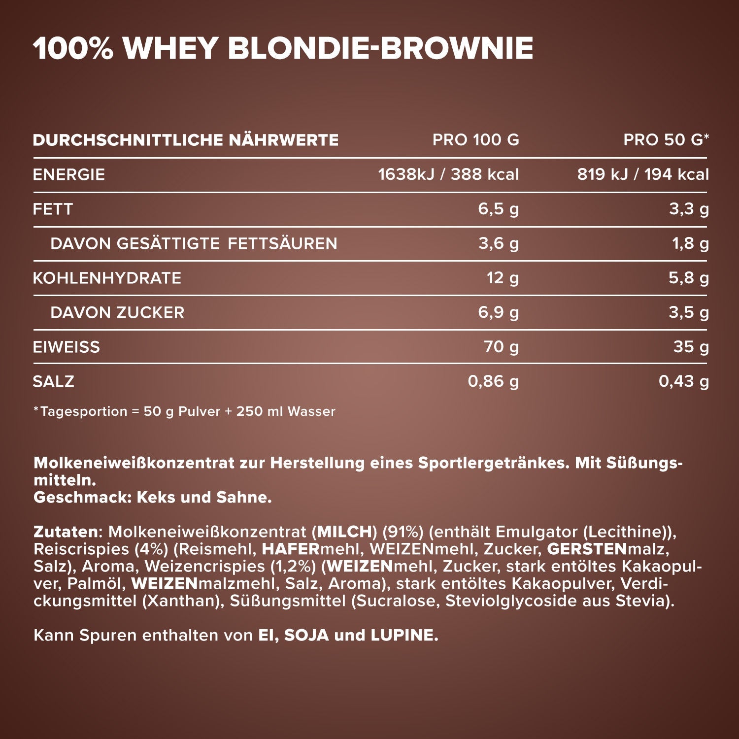 ²Eine Portion enthält 30 g Pulver und 200 ml Wasser oder Milch.³In unserem Designer Whey verwenden wir keinen zugesetzten Zucker, sondern setzen auf unbedenkliche