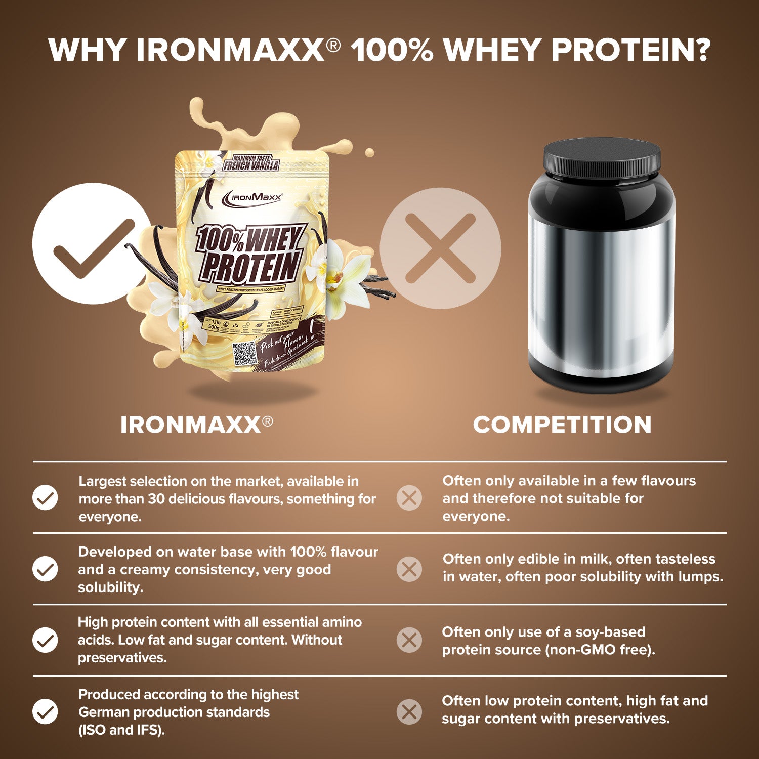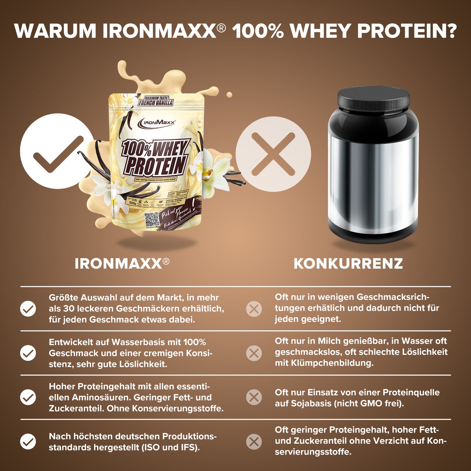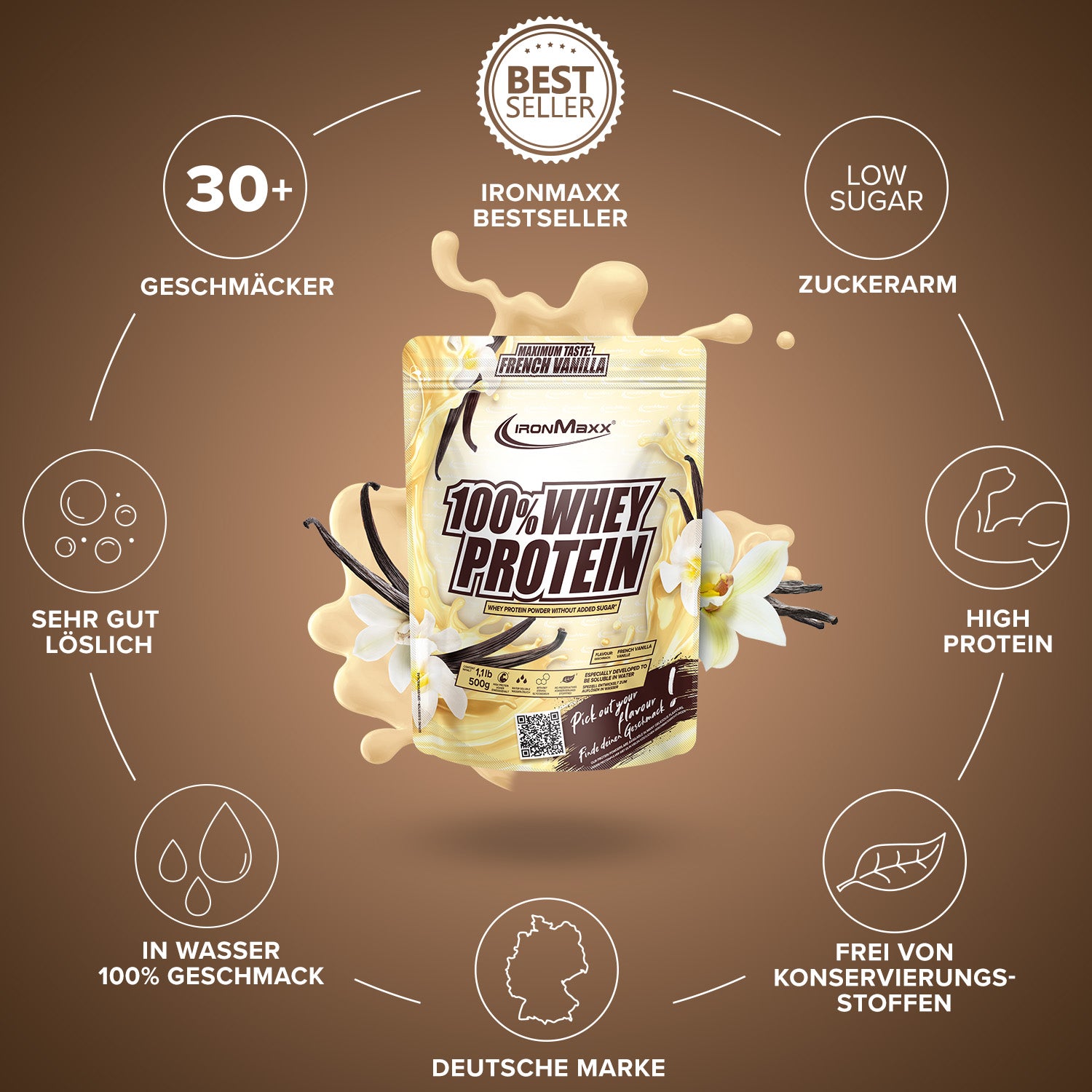 IronMaxx® 100% Whey Protein gehört zu den beliebtesten Eiweißshakes für Muskelaufbau, Regeneration und Diätphasen. Mit bis zu 80 % Eiweiß, einem vollständigen Aminosäurenprofil (inklusive BCAAs und EAAs) sowie einem cremigen Geschmack ist es der ideale Begleiter für deinen Fitnessalltag.