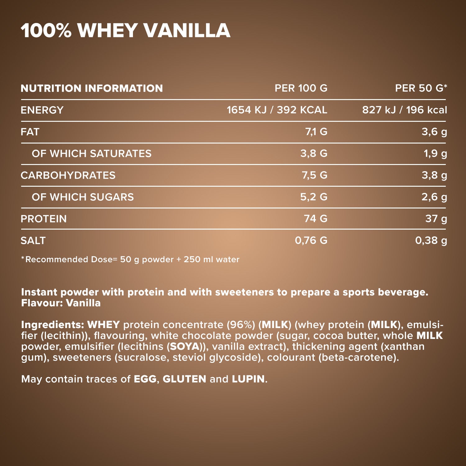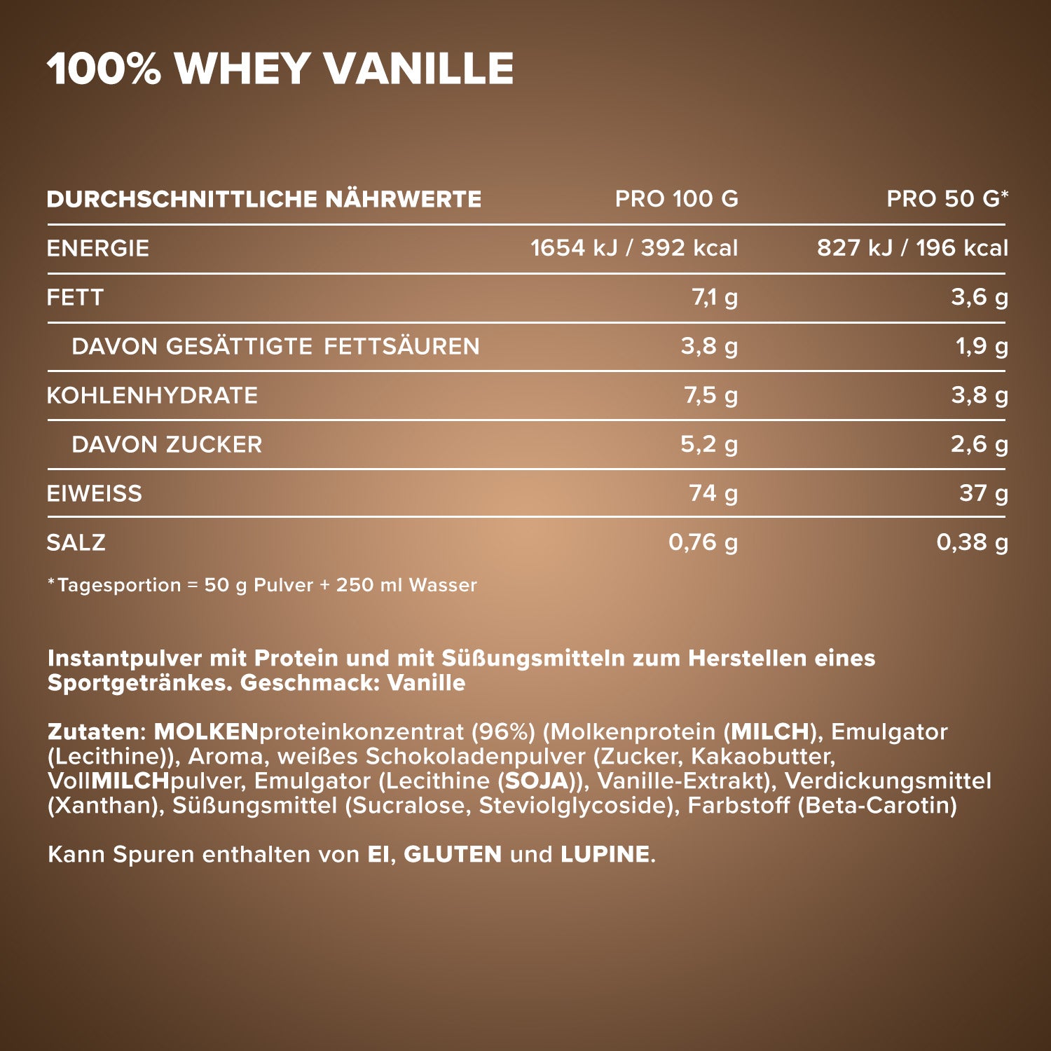 ²Eine Portion enthält 30 g Pulver und 200 ml Wasser oder Milch.³In unserem Designer Whey verwenden wir keinen zugesetzten Zucker, sondern setzen auf unbedenkliche