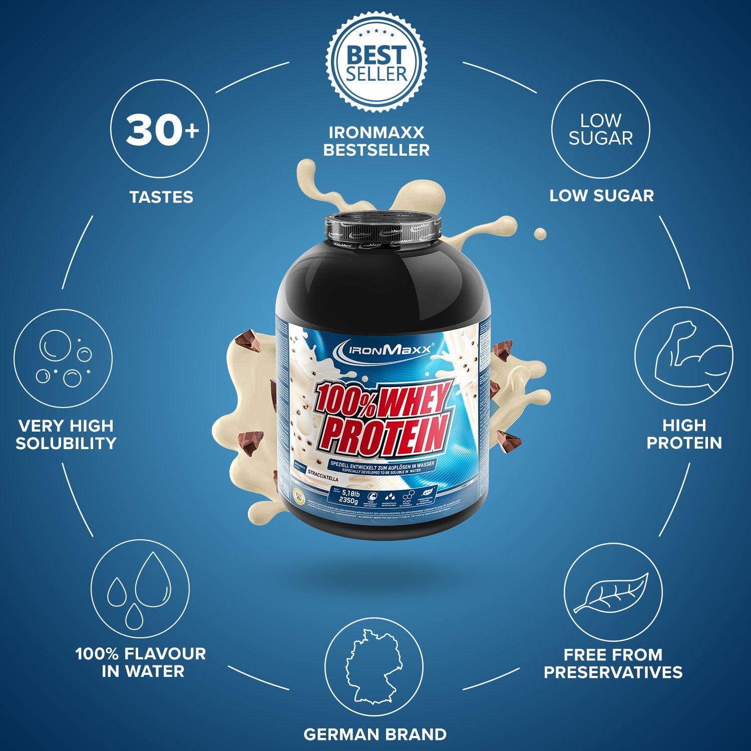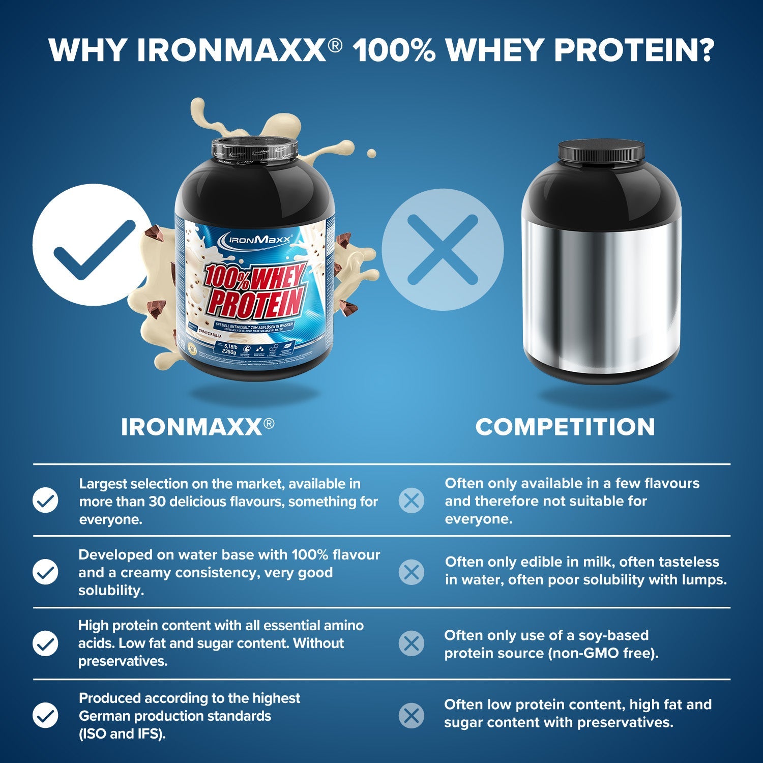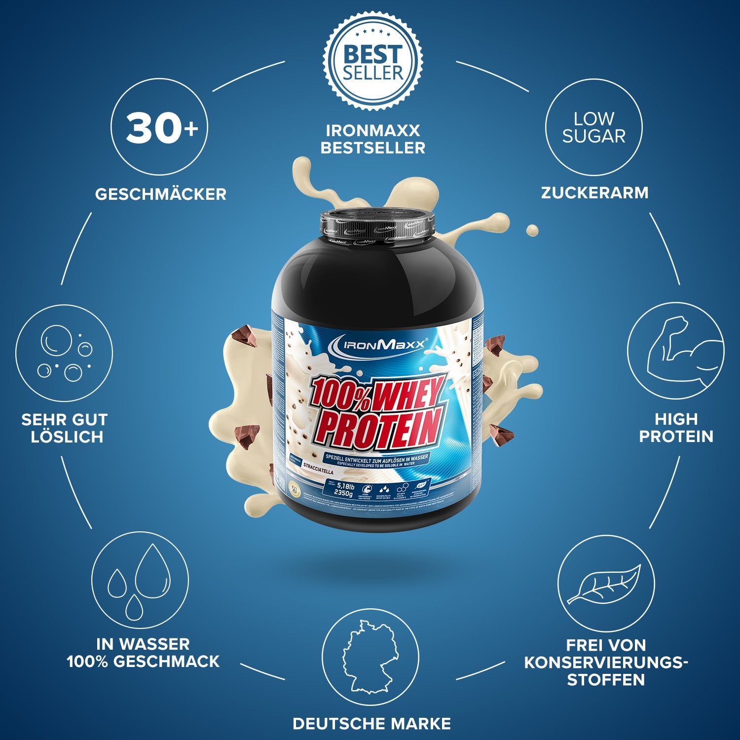 IronMaxx® 100% Whey Protein zählt zu den beliebtesten Proteinshakes für Muskelaufbau, Regeneration und Diätphasen. Mit bis zu 80 % Eiweiß, einem kompletten Aminosäurenprofil (inkl. BCAAs & EAAs) und cremigem Geschmack ist es der ideale Begleiter für deinen Fitnessalltag.