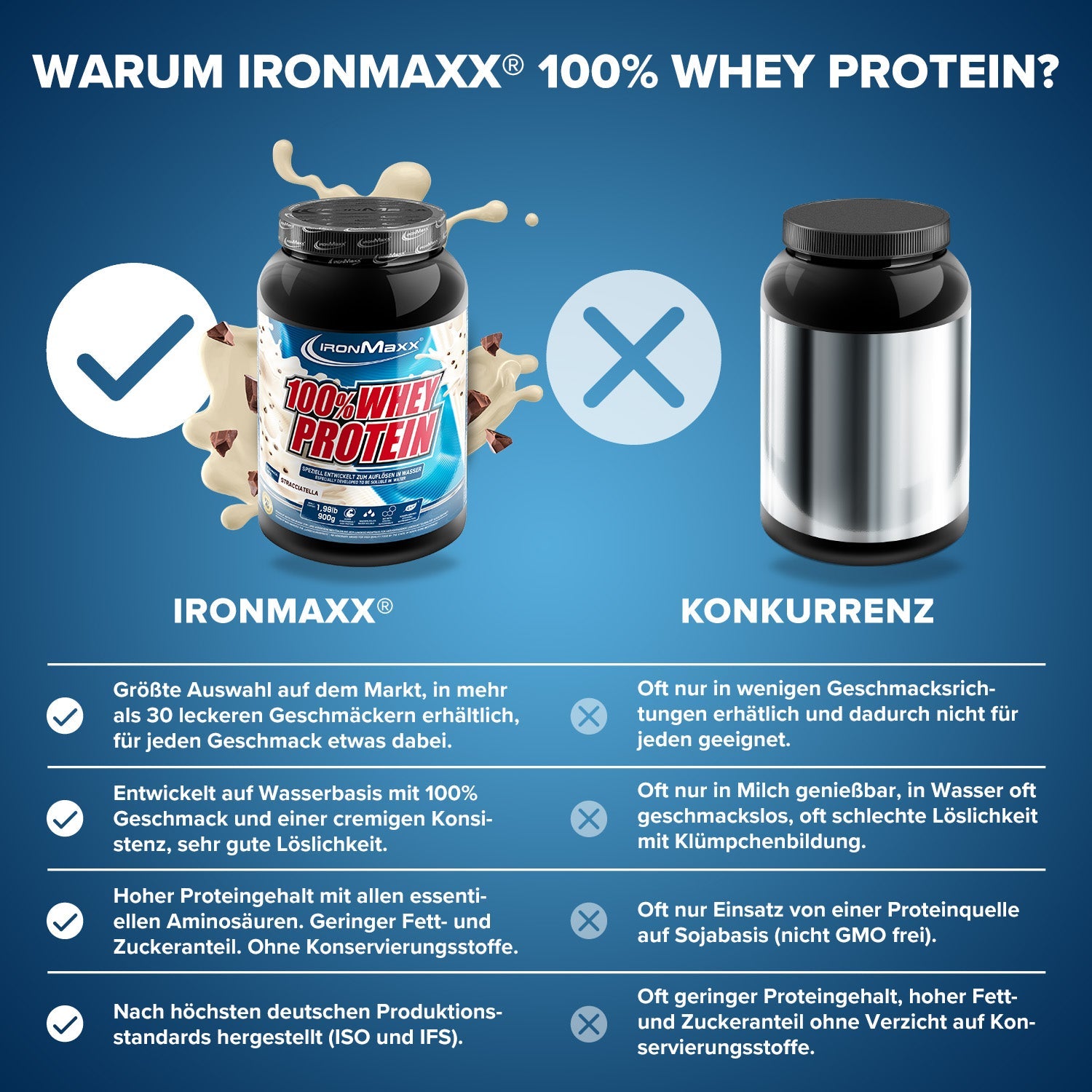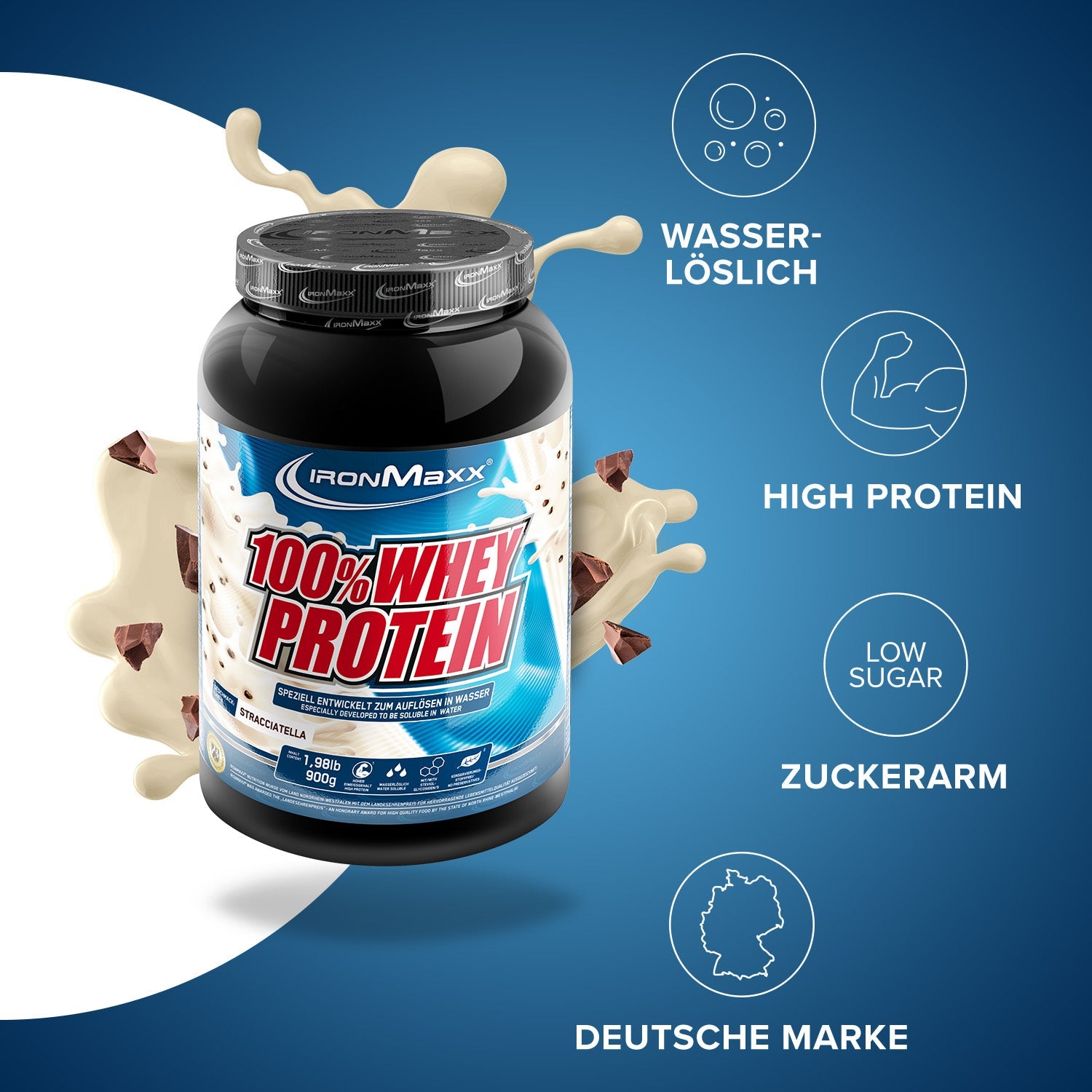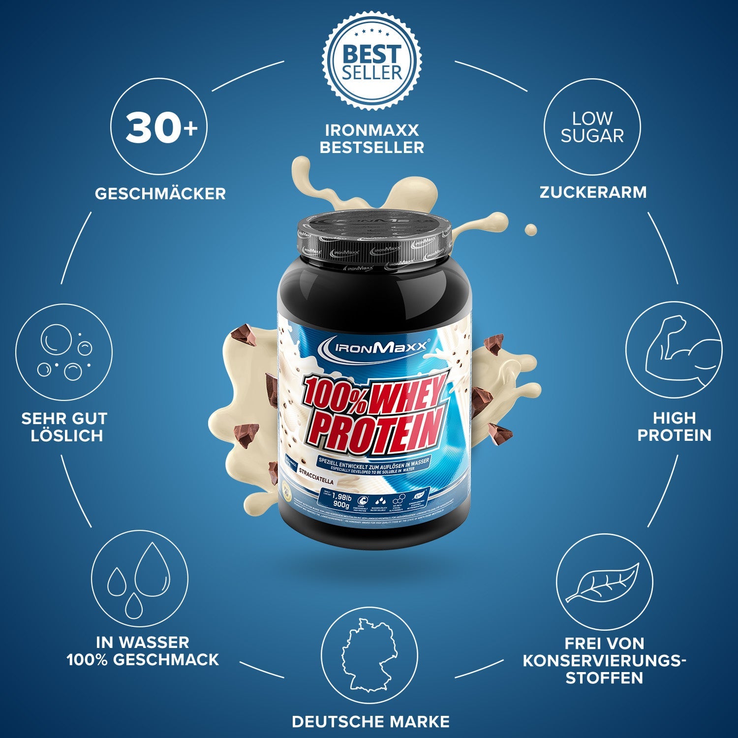 IronMaxx® 100% Whey Protein zählt zu den beliebtesten Proteinshakes für Muskelaufbau, Regeneration und Diätphasen. Mit bis zu 80 % Eiweiß, einem kompletten Aminosäurenprofil (inkl. BCAAs & EAAs) und cremigem Geschmack ist es der ideale Begleiter für deinen Fitnessalltag.