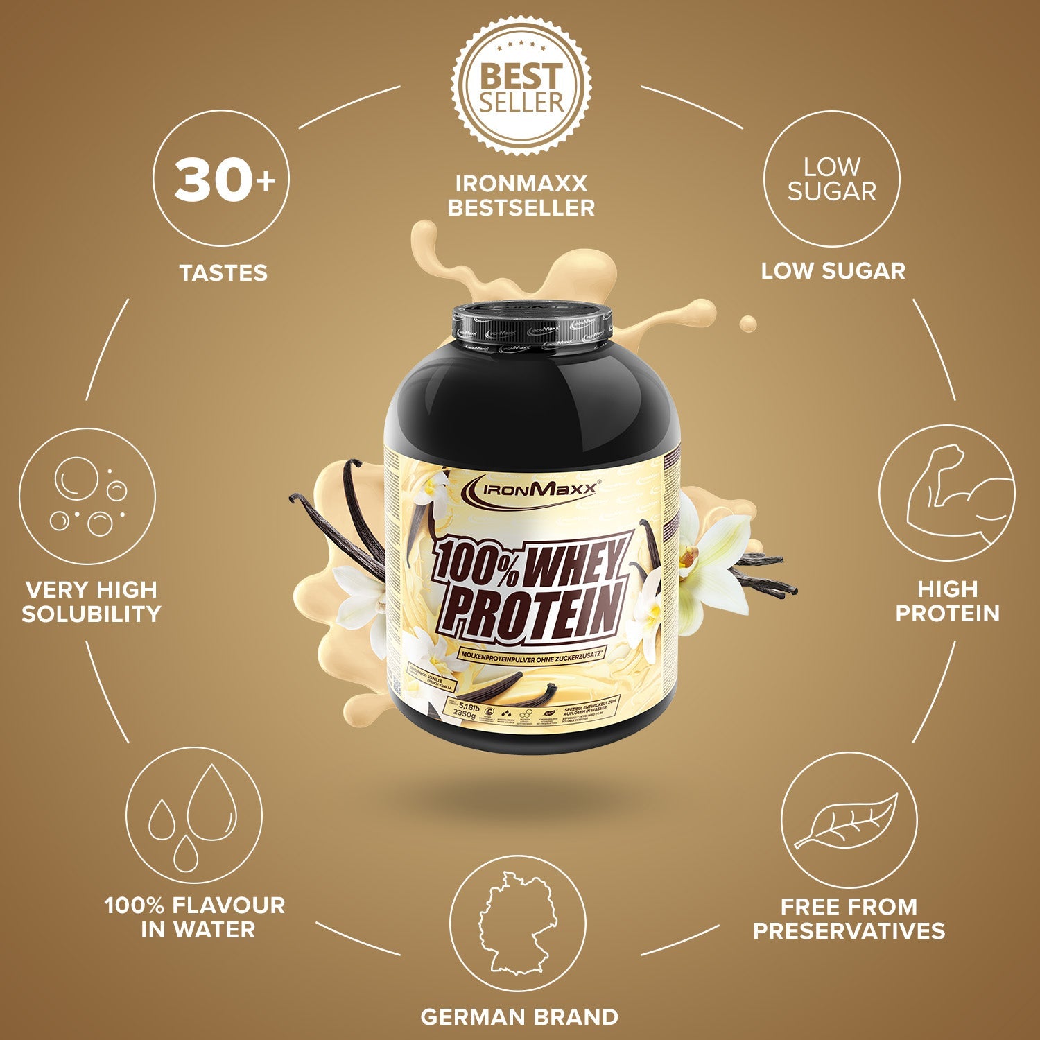 IronMaxx® 100% Whey Protein zählt zu den beliebtesten Proteinshakes für Muskelaufbau, Regeneration und Diätphasen. Mit bis zu 80 % Eiweiß, einem kompletten Aminosäurenprofil (inkl. BCAAs & EAAs) und cremigem Geschmack ist es der ideale Begleiter für deinen Fitnessalltag.