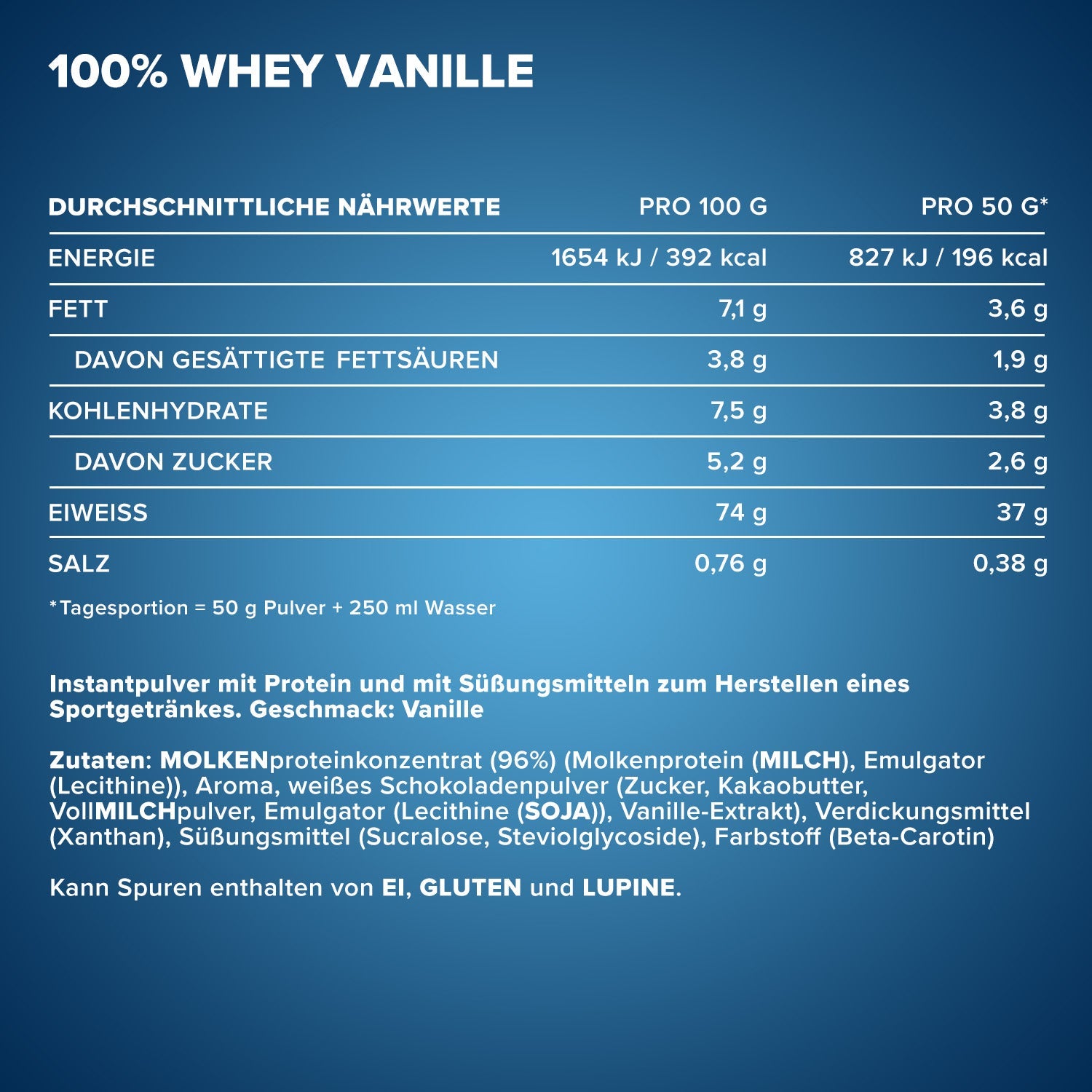 ²Eine Portion enthält 30 g Pulver und 200 ml Wasser oder Milch.³In unserem Designer Whey verwenden wir keinen zugesetzten Zucker, sondern setzen auf unbedenkliche
