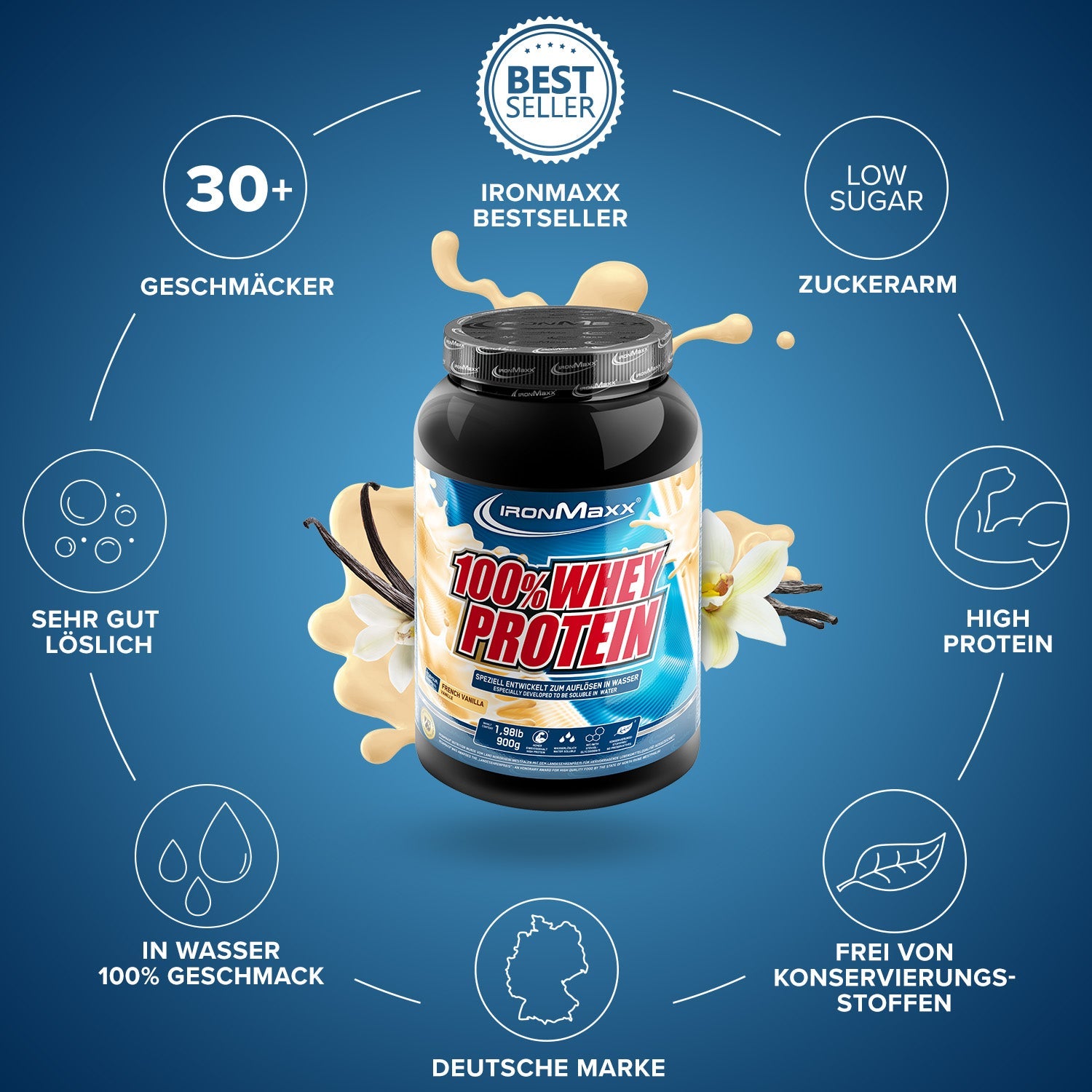 IronMaxx® 100% Whey Protein zählt zu den beliebtesten Proteinshakes für Muskelaufbau, Regeneration und Diätphasen. Mit bis zu 80 % Eiweiß, einem kompletten Aminosäurenprofil (inkl. BCAAs & EAAs) und cremigem Geschmack ist es der ideale Begleiter für deinen Fitnessalltag.