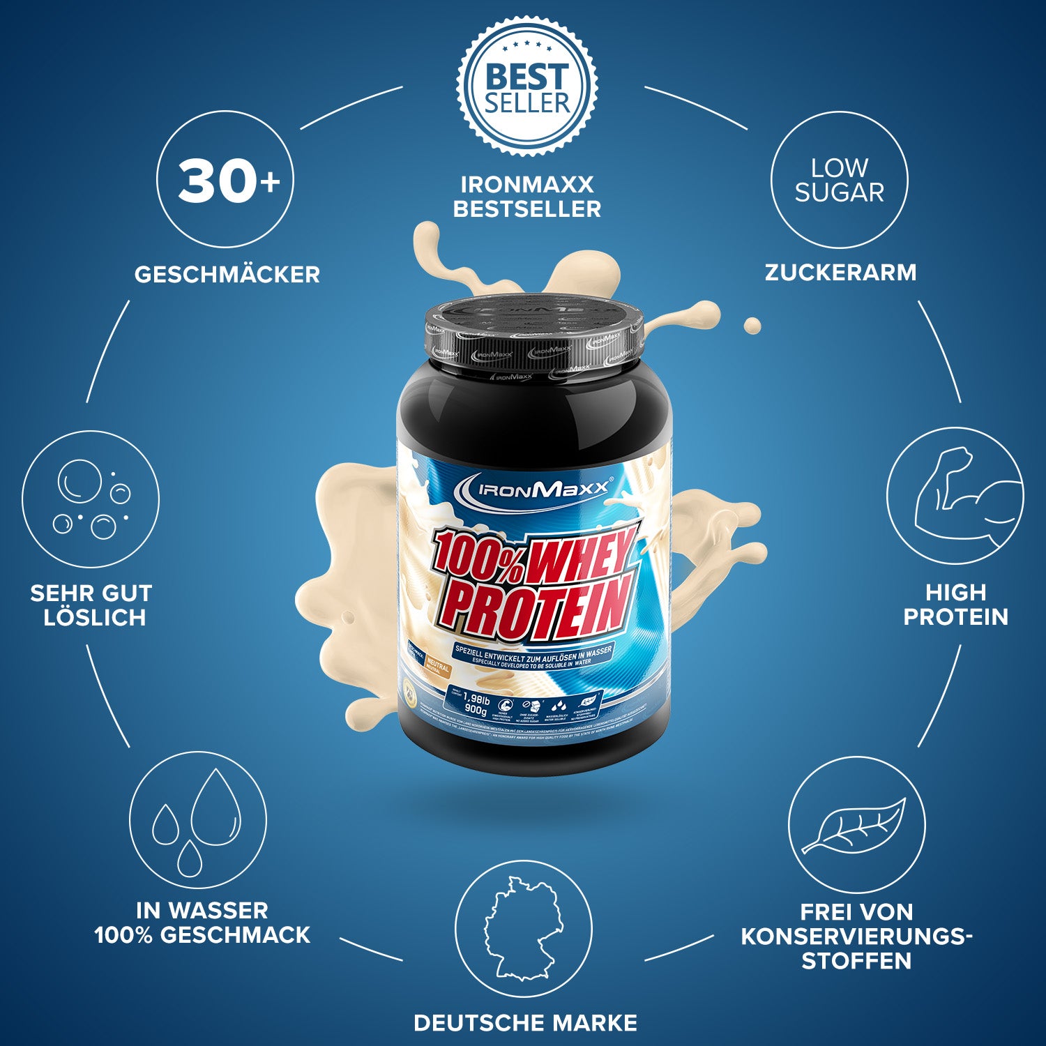 Die angegebene empfohlene tägliche Verzehrmenge darf nicht überschritten werden! Außerhalb der Reichweite von Kindern lagern! Vor Wärme, Feuchtigkeit und Sonneneinstrahlung geschützt aufbewahren. Proteine tragen zu einer Zunahme an Muskelmasse bei. Eine ausgewogene und abwechslungsreiche Ernährung und eine gesunde Lebensweise sind wichtig. Laut Handelsbrauch.
