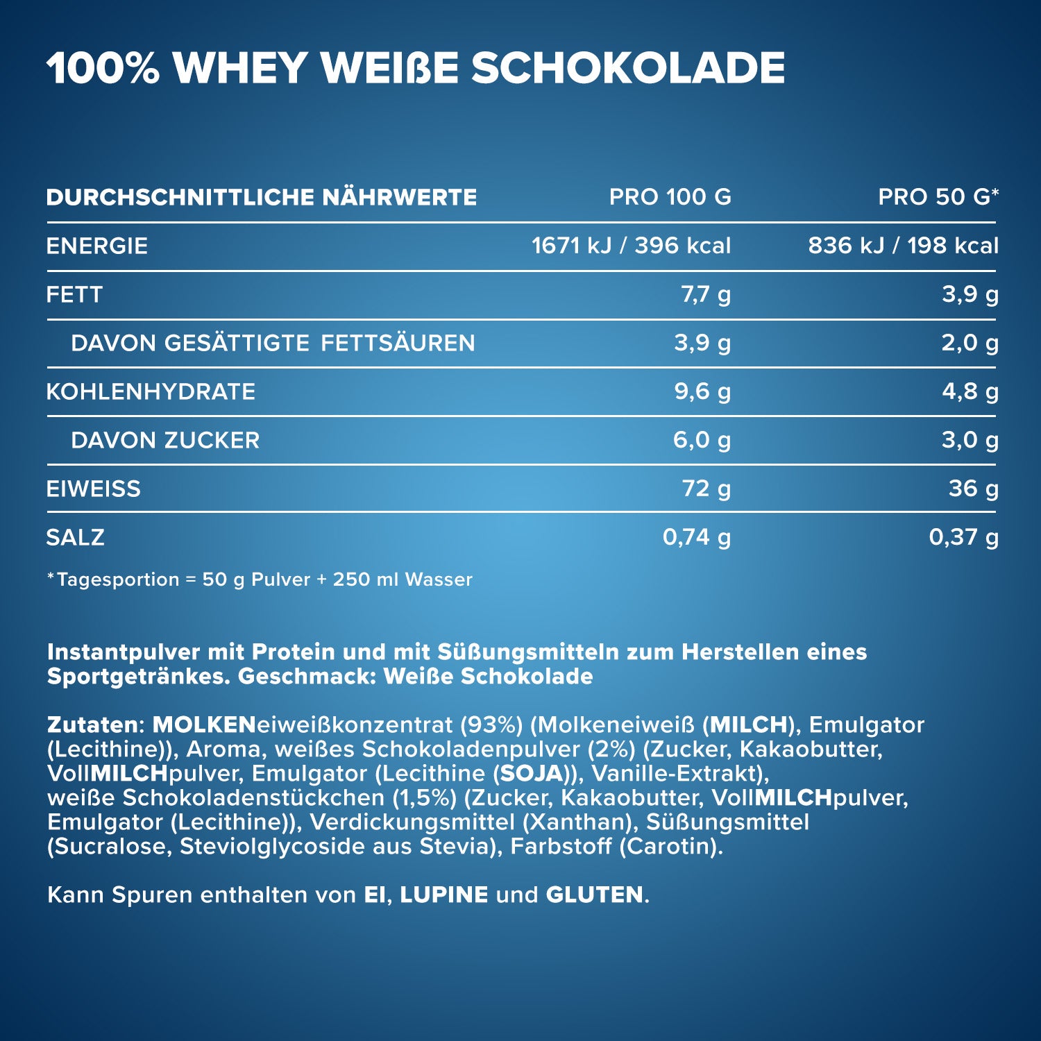 ²Eine Portion enthält 30 g Pulver und 200 ml Wasser oder Milch.³In unserem Designer Whey verwenden wir keinen zugesetzten Zucker, sondern setzen auf unbedenkliche