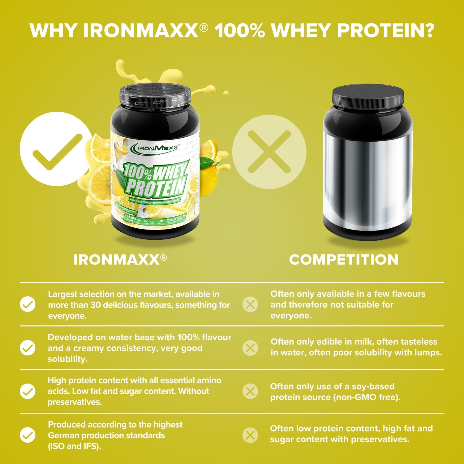 IronMaxx® 100% Whey Protein zählt zu den beliebtesten Proteinshakes für Muskelaufbau, Regeneration und Diätphasen. Mit bis zu 80 % Eiweiß, einem kompletten Aminosäurenprofil (inkl. BCAAs & EAAs) und cremigem Geschmack ist es der ideale Begleiter für deinen Fitnessalltag.