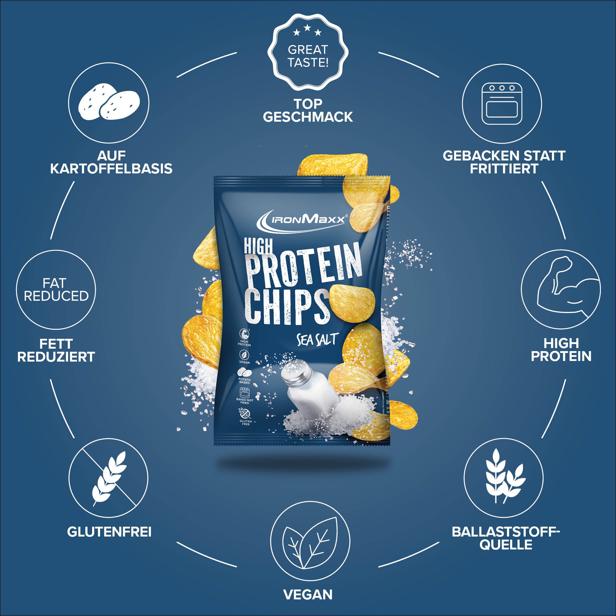 Die IronMaxx® High Protein Potato Chips sind der perfekte Fitness-Snack für alle, die vollen Geschmack genießen und gleichzeitig ihre Fitnessziele erreichen möchten. Mit satten 30 g Protein pro 100 g unterstützen sie effektiv den Muskelaufbau – ganz ohne schlechtes Gewissen.