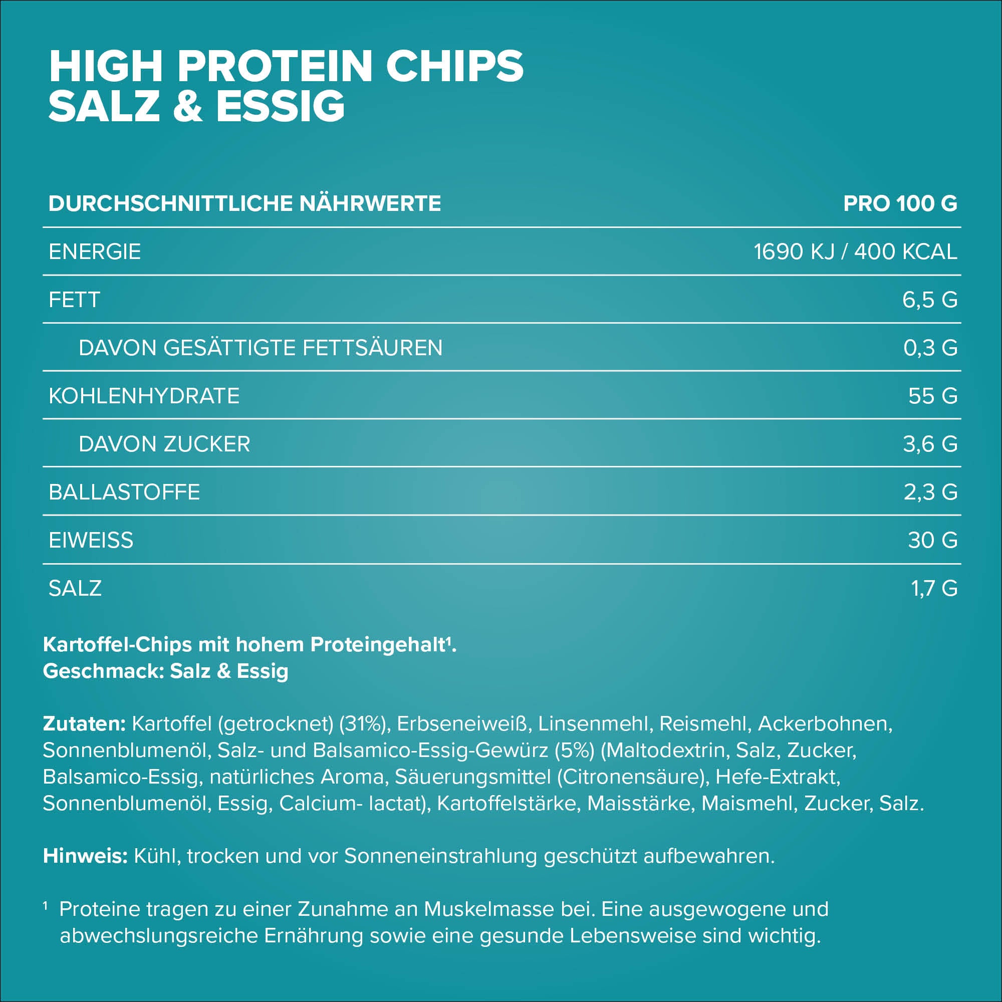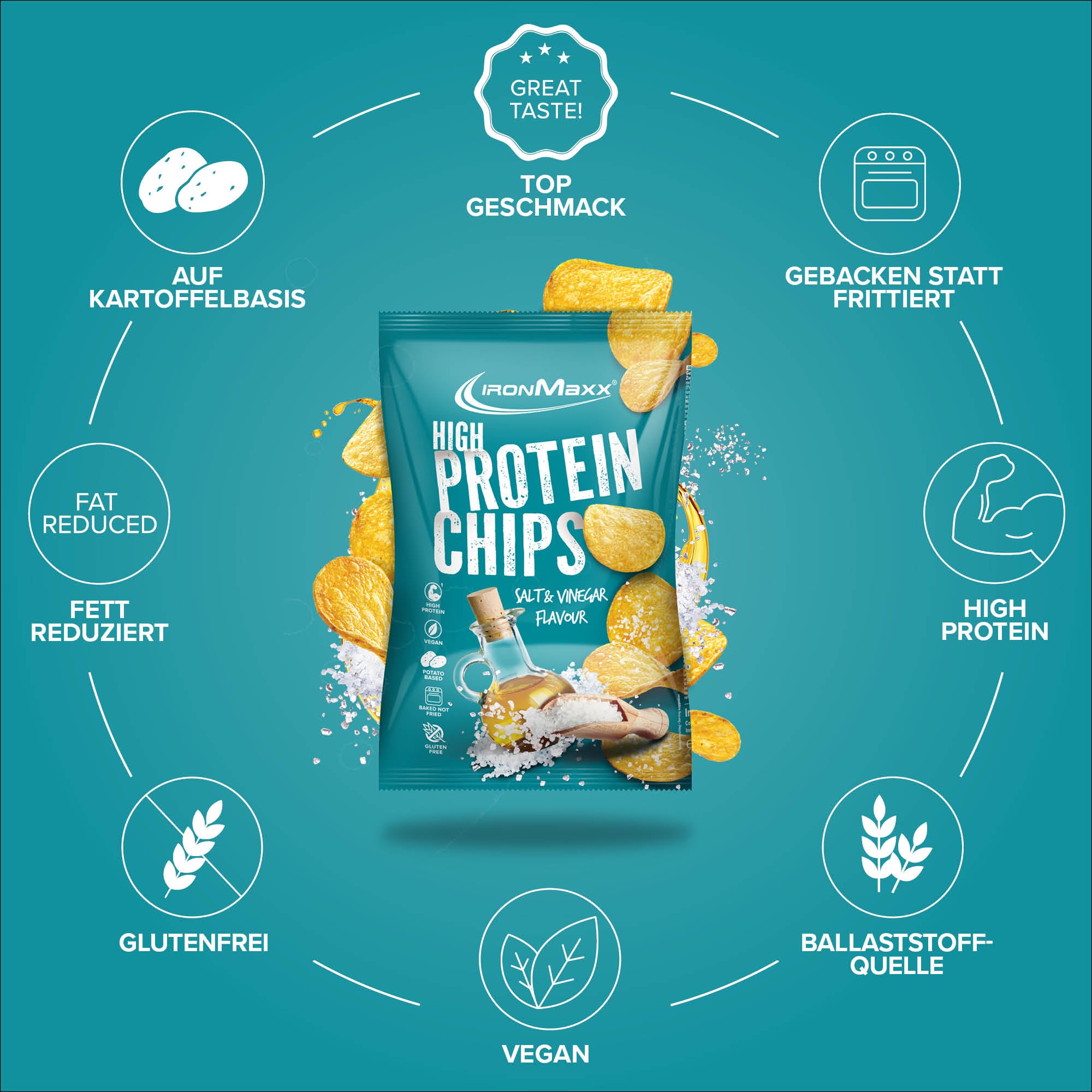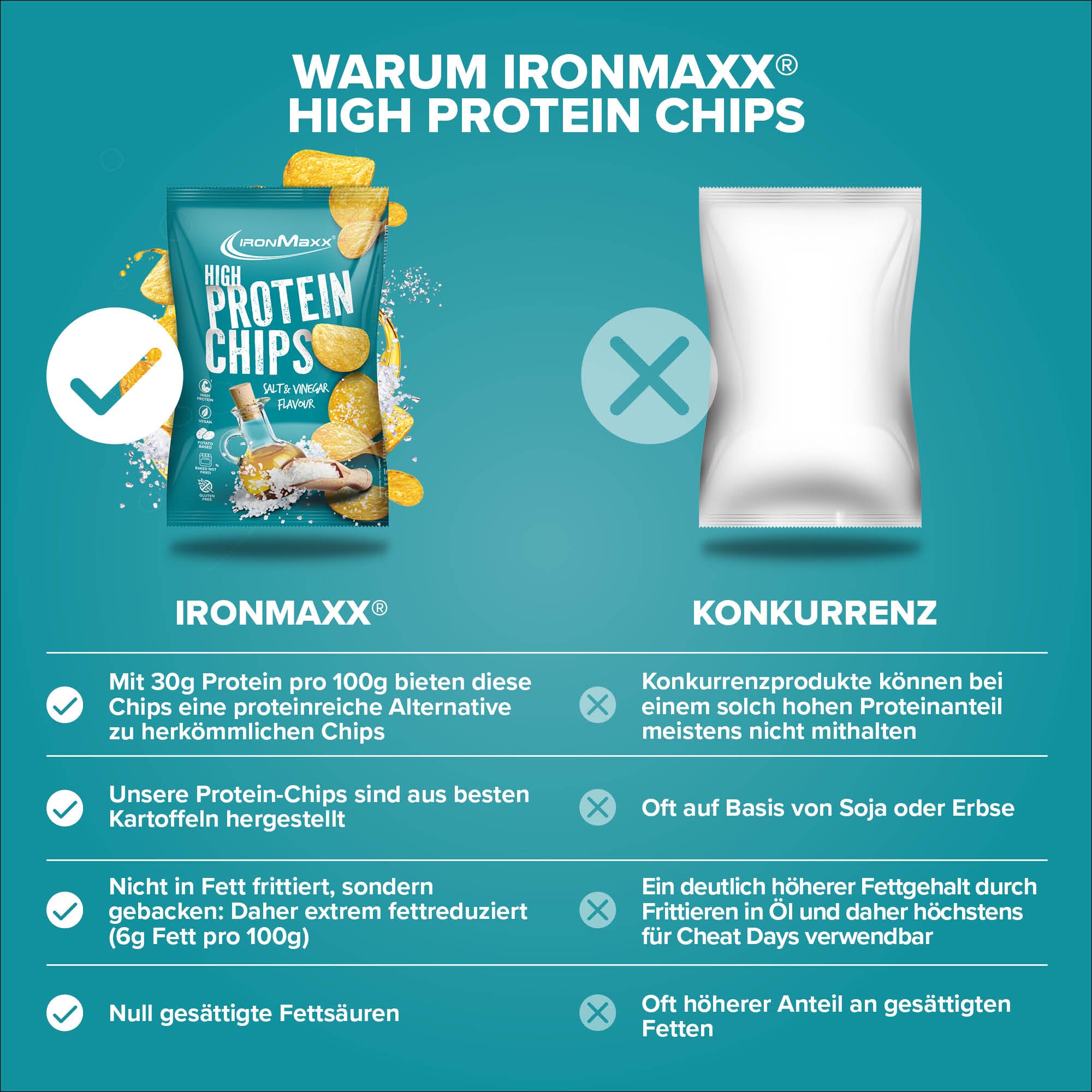 Die IronMaxx® High Protein Potato Chips sind der perfekte Fitness-Snack für alle, die vollen Geschmack genießen und gleichzeitig ihre Fitnessziele erreichen möchten. Mit satten 30 g Protein pro 100 g unterstützen sie effektiv den Muskelaufbau – ganz ohne schlechtes Gewissen.