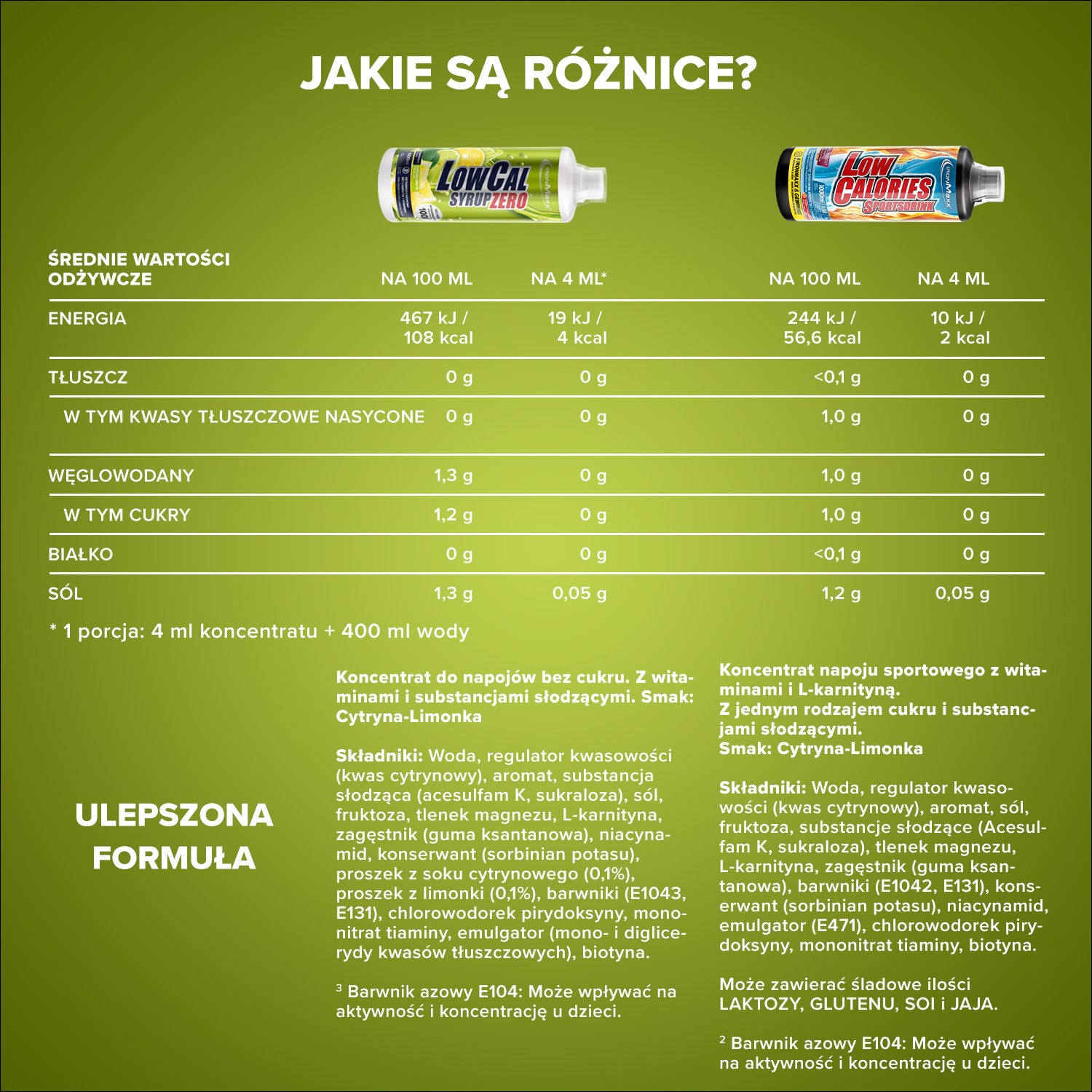 Wasser, Säuerungsmittel (Citronensäure), Aroma, Süßungsmittel (Acesulfam K, Sucralose), Salz, Fruktose, Magnesiumoxid, L-Carnitin, Verdickungsmittel (Xanthan), Nicotinamid, Konservierungsstoff (Kaliumsorbat), Zitronensaftpulver (0,1%), Limetten-Fruchtpulver (0,1%), Farbstoff (E 104*, E 131), Pyridoxin-Hydrochlorid, Thiaminmononitrat, Emulgator (Mono- und Diglyceride von Speisefettsäuren), Biotin.