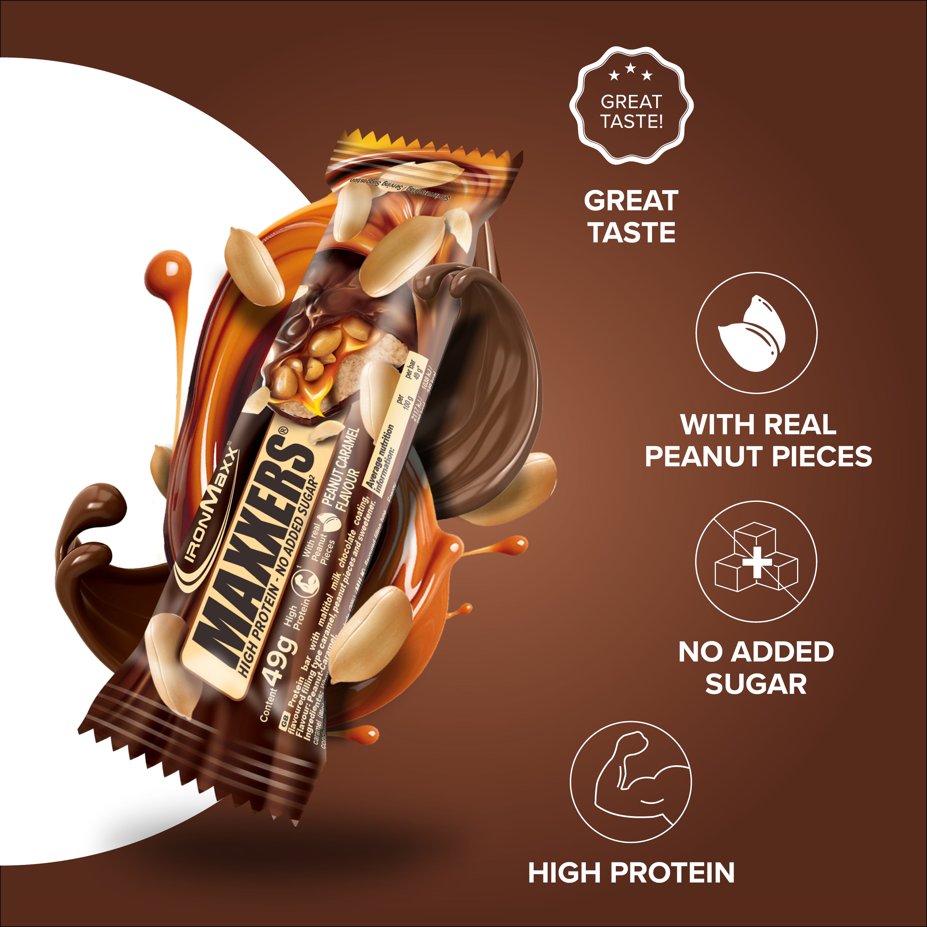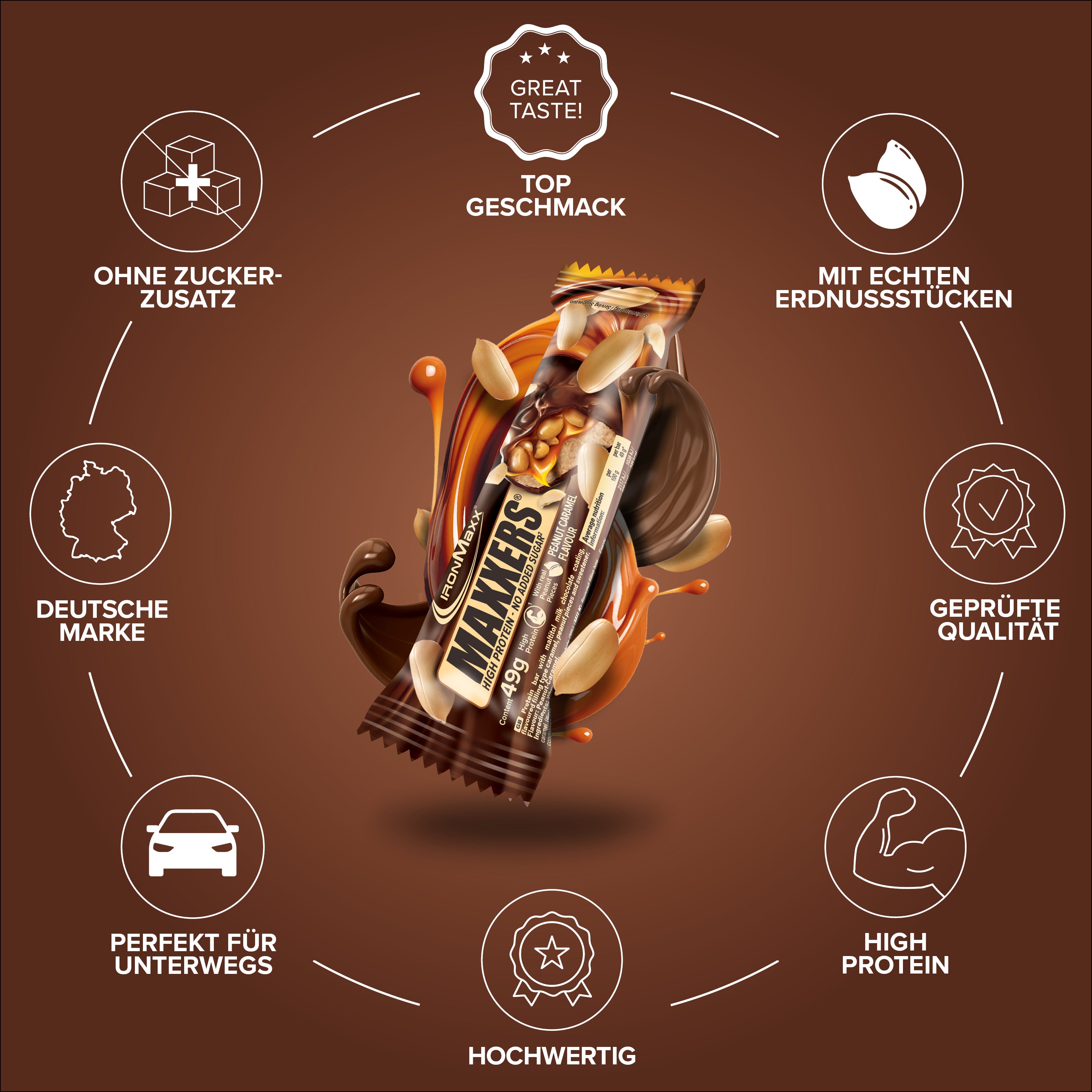 IronMaxx® Maxxers – Dein smarter Proteinriegel für maximale Power unterwegs. Frei von Zuckerzusatz und randvoll mit hochwertigem Eiweiß unterstützt er Muskelaufbau, Regeneration und deine Fitnessziele.