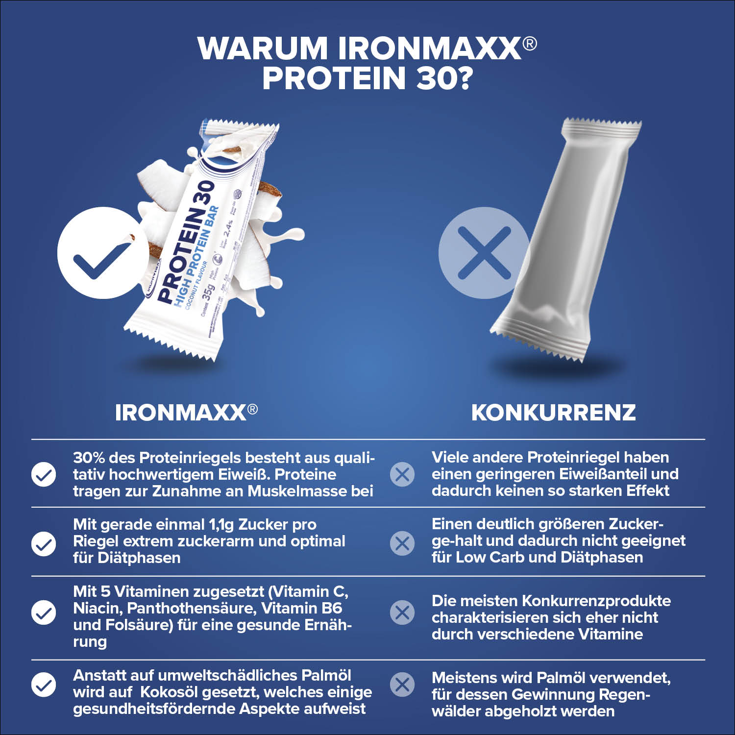 - Der kompakte Eiweißriegel von IronMaxx®, der dich auch unterwegs mit hochwertigen Proteinen versorgt