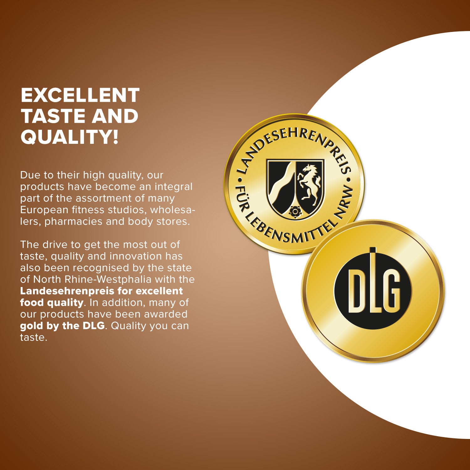 - Einzigartiger Geschmack durch eine cremige Proteinschicht und einem köstlichen Kakaoüberzug