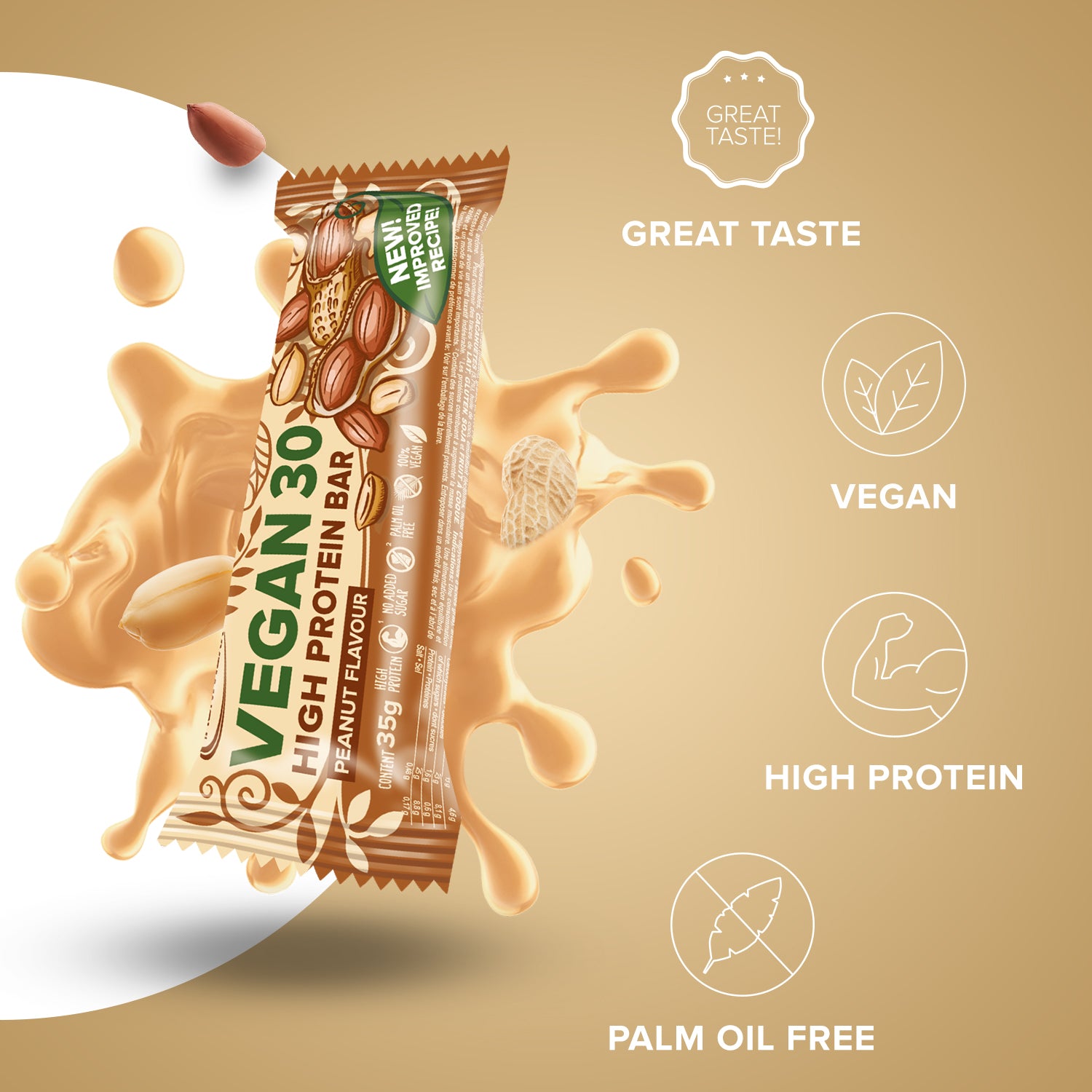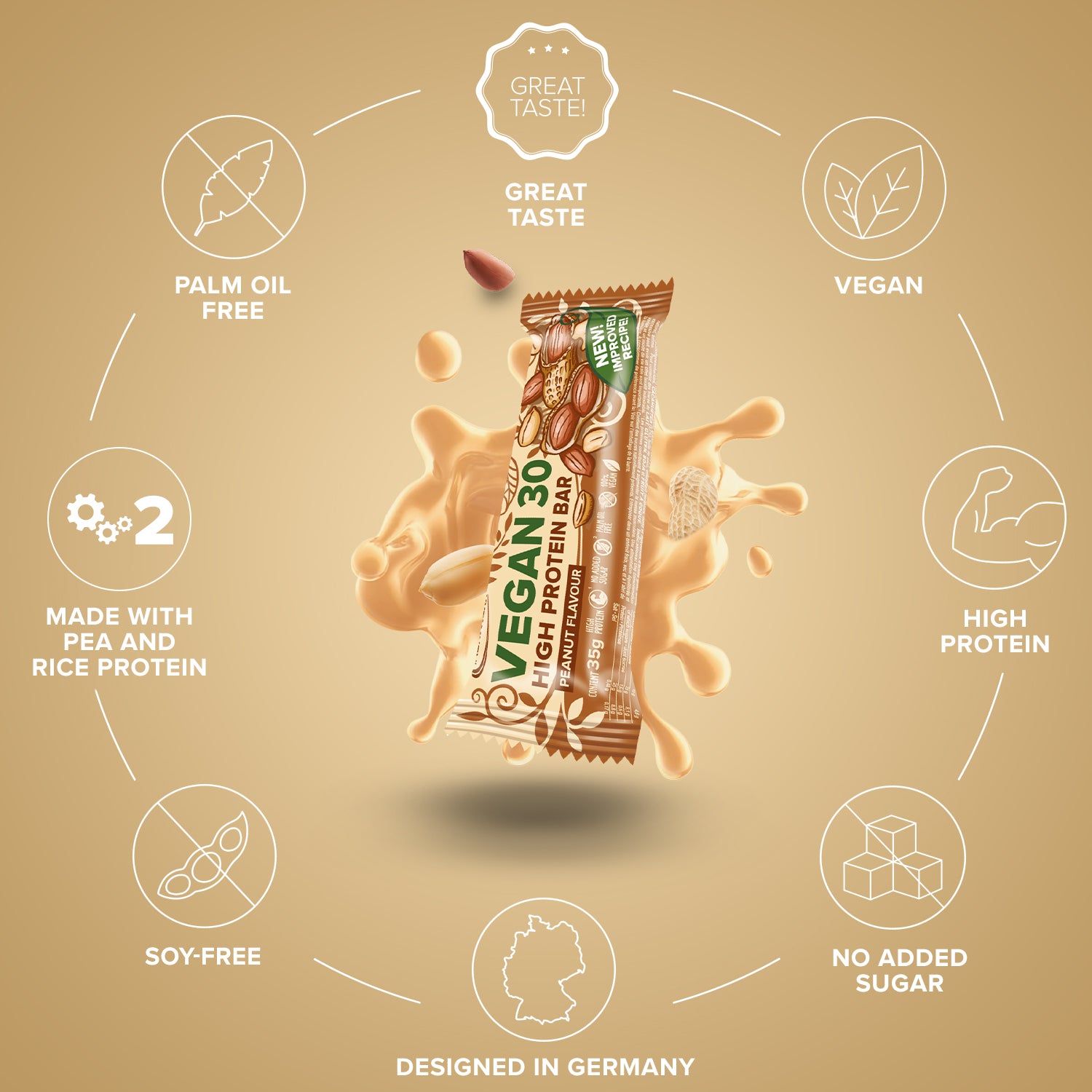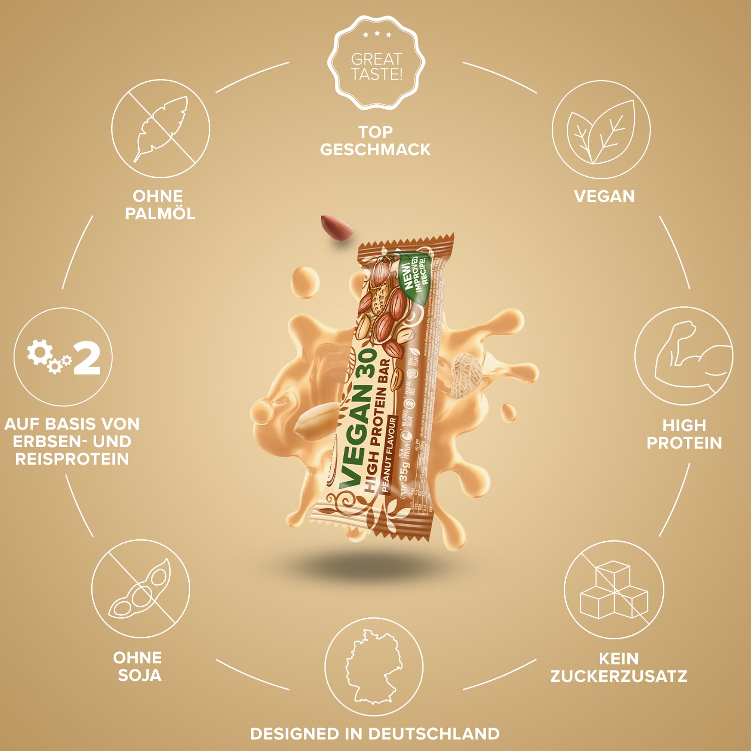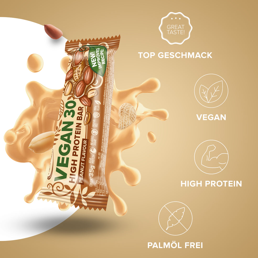 - Veganer Proteinriegel mit verbesserter Rezeptur & Konsistenz.
