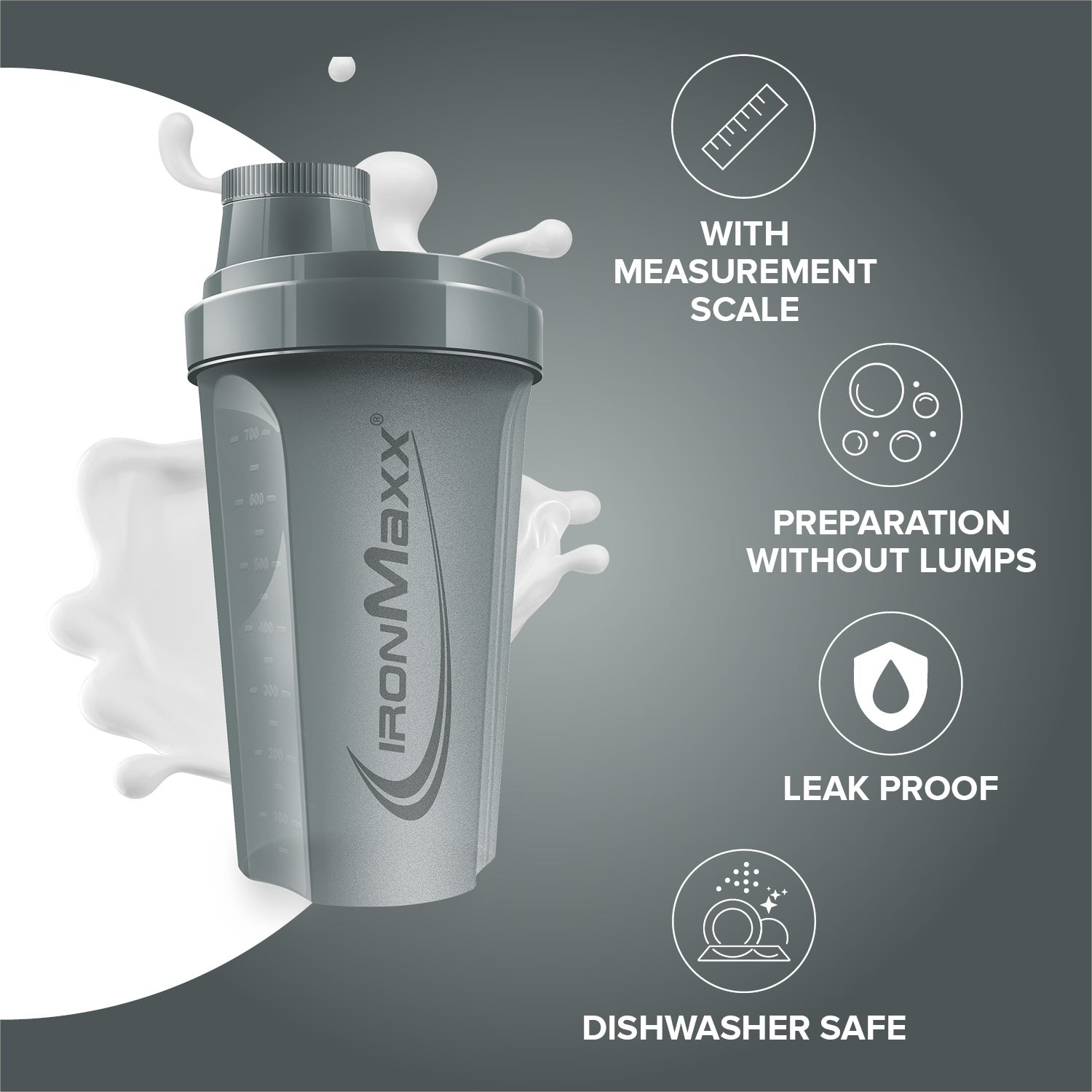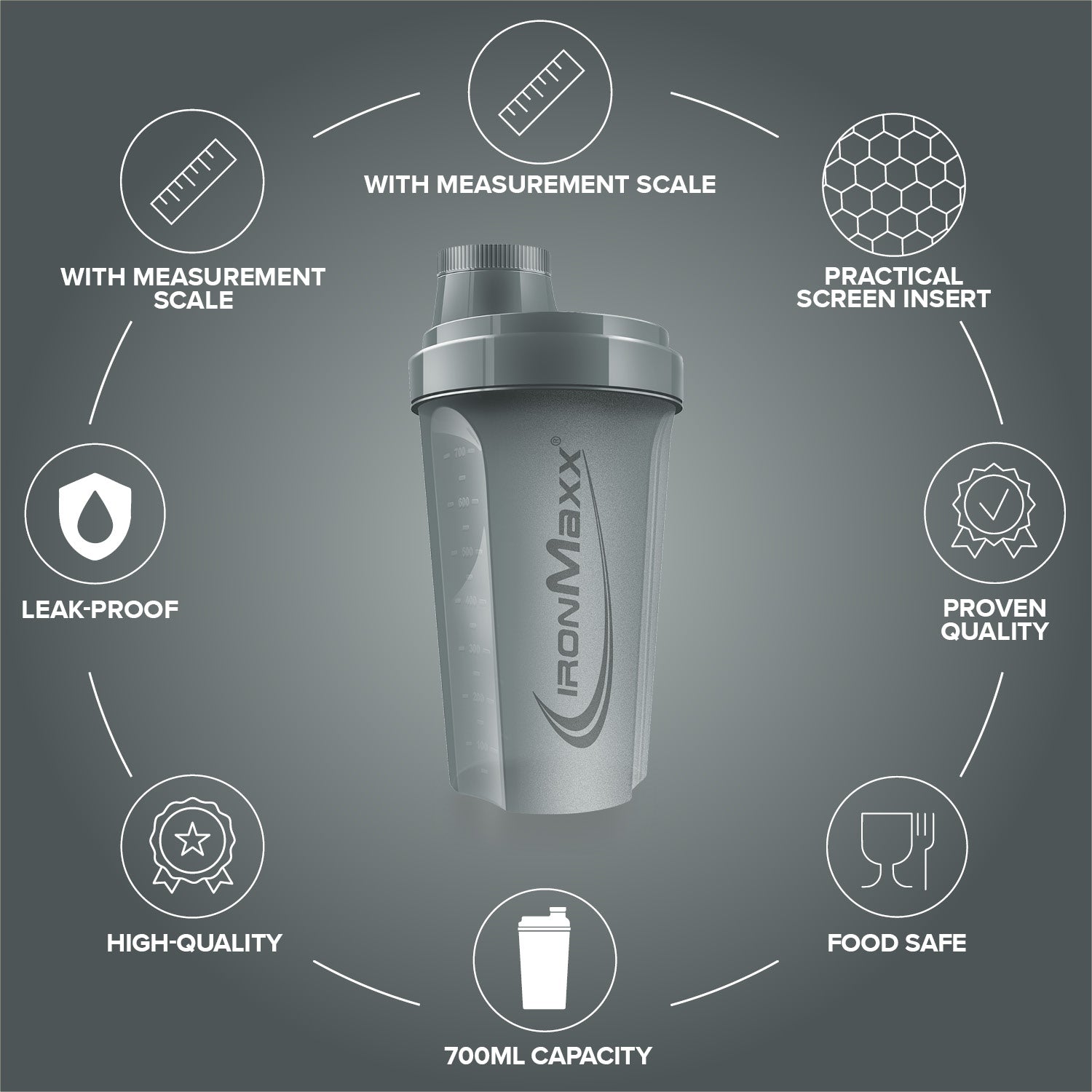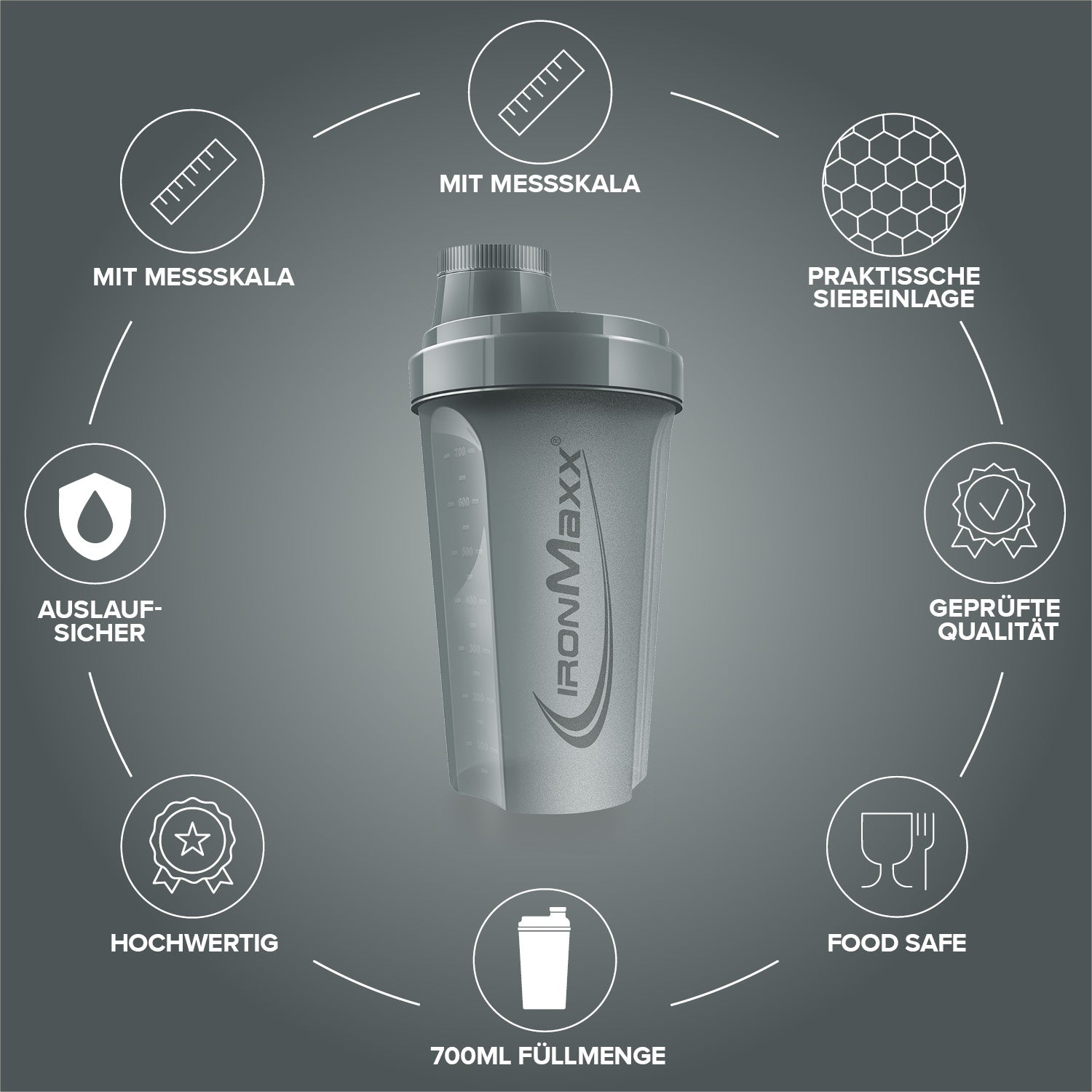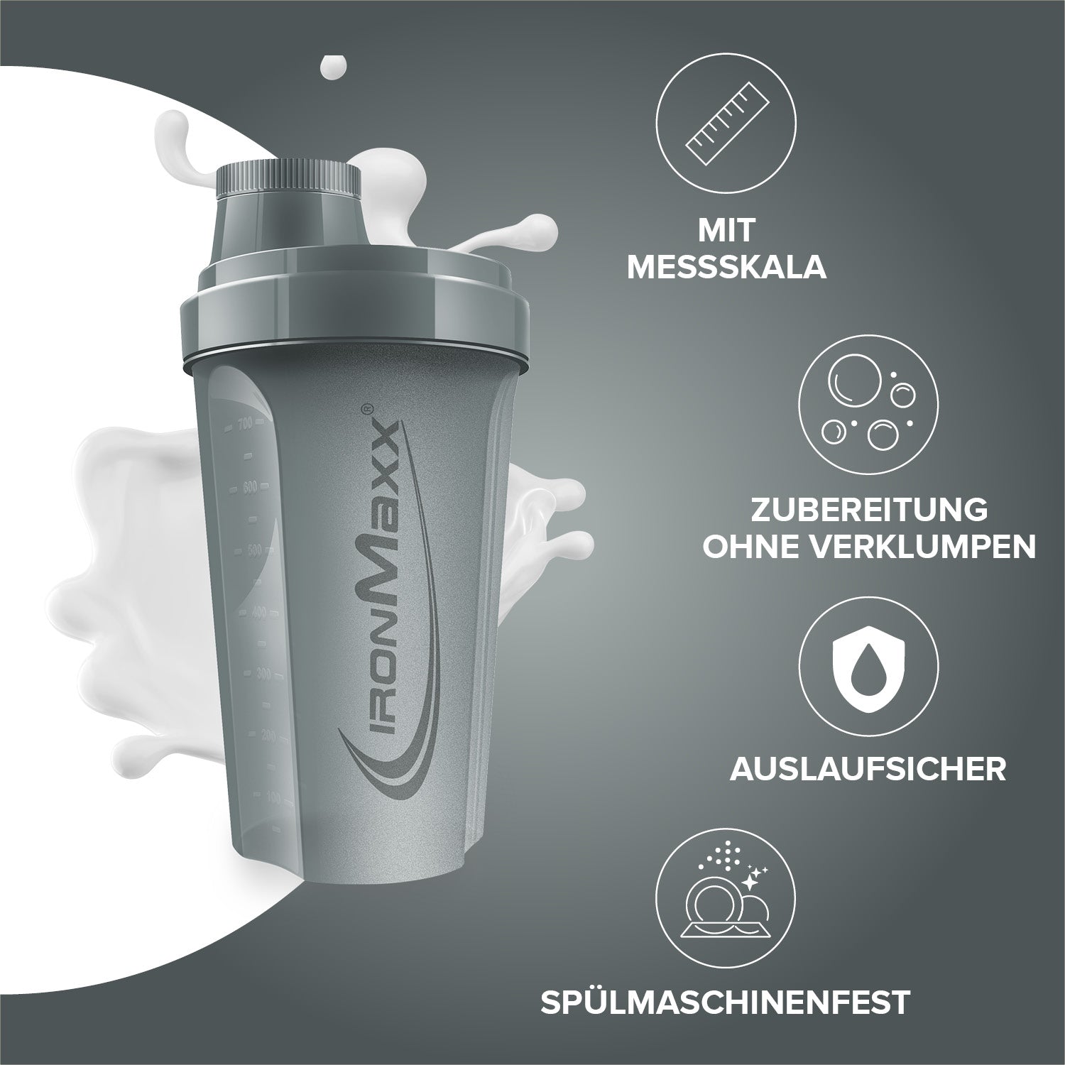 - Klassisch & funktional: Der IronMaxx® Shaker bietet alles, was ein hochwertiger Protein Shaker braucht – einfach, praktisch und effektiv.