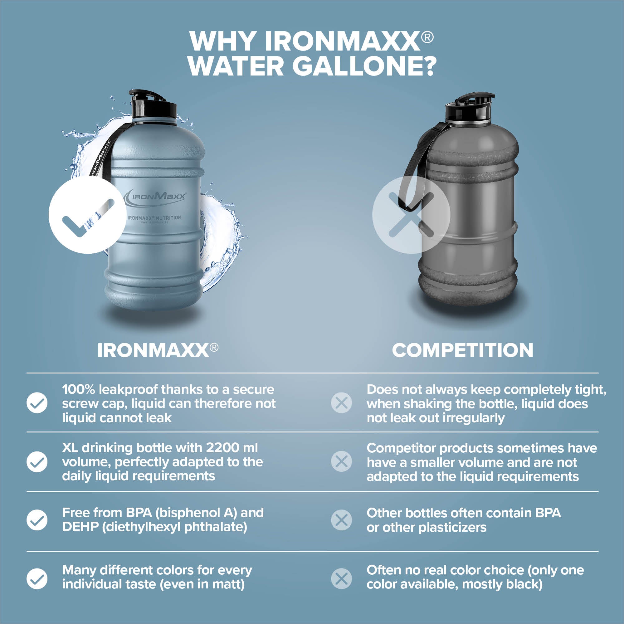 - Dein Hydration-Booster: Die Water Gallon von IronMaxx® ist der perfekte Motivator, um ausreichend Flüssigkeit zu trinken – ob beim Training oder im Alltag.