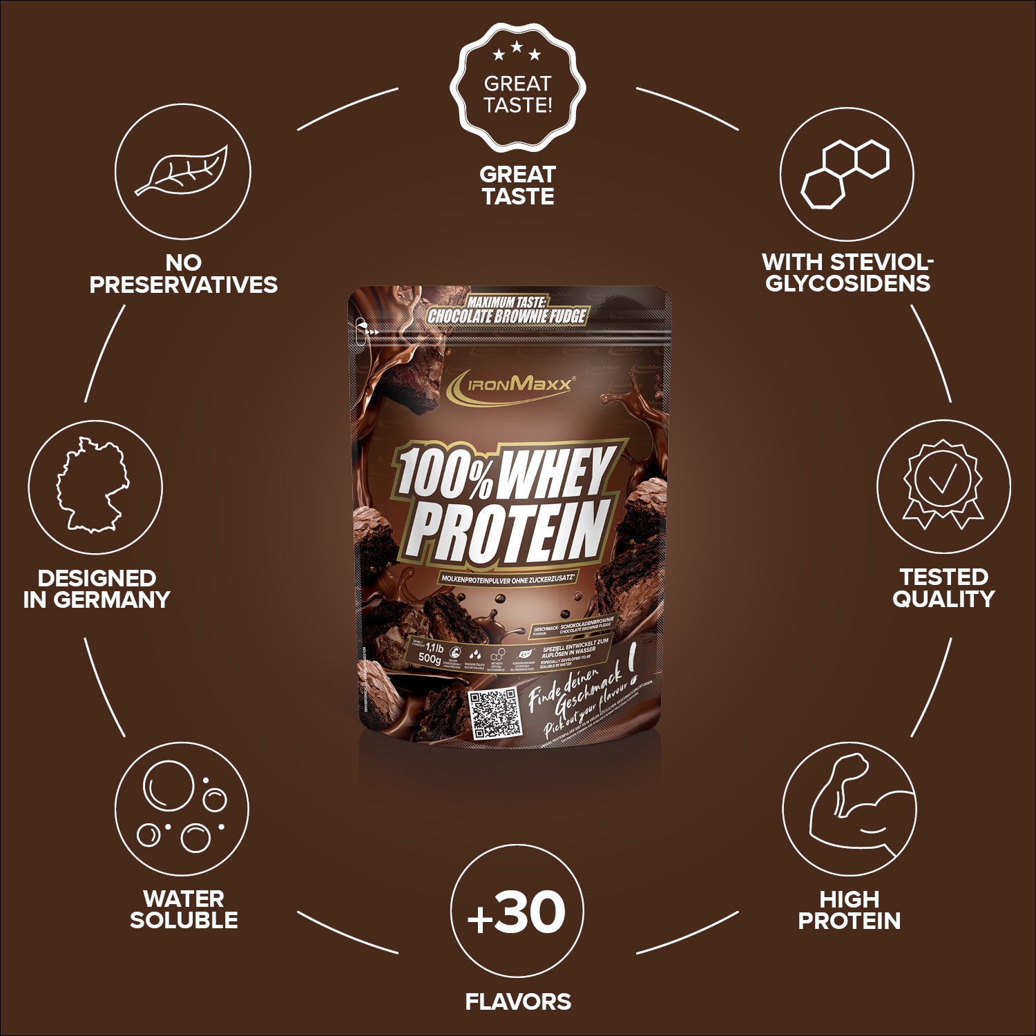 ²Eine Portion enthält 30 g Pulver und 200 ml Wasser oder Milch.³In unserem Designer Whey verwenden wir keinen zugesetzten Zucker, sondern setzen auf unbedenkliche